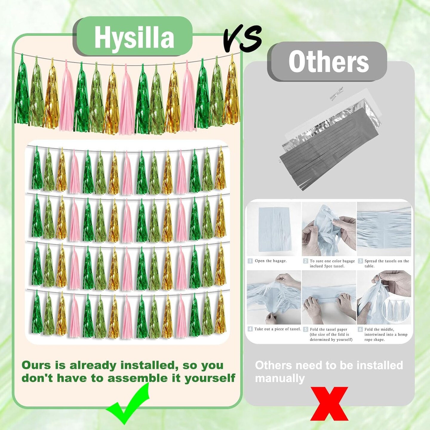 3P Sage-Green Tassels Banner Streamers (Green Light Green Gold Pink)
