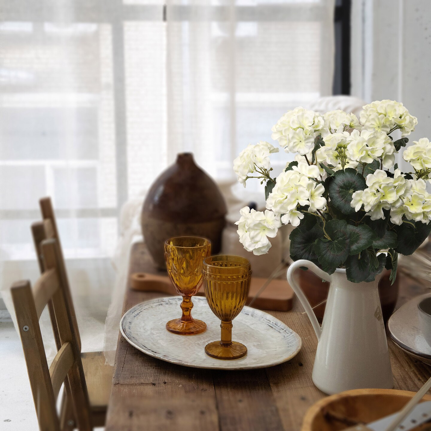 3-Pack 18" White Geranium Bushes | Real Touch Artificial Flowers with 7 Fronds – Perfect for Indoor/Outdoor Decor