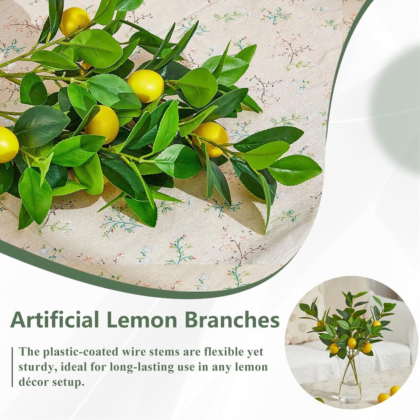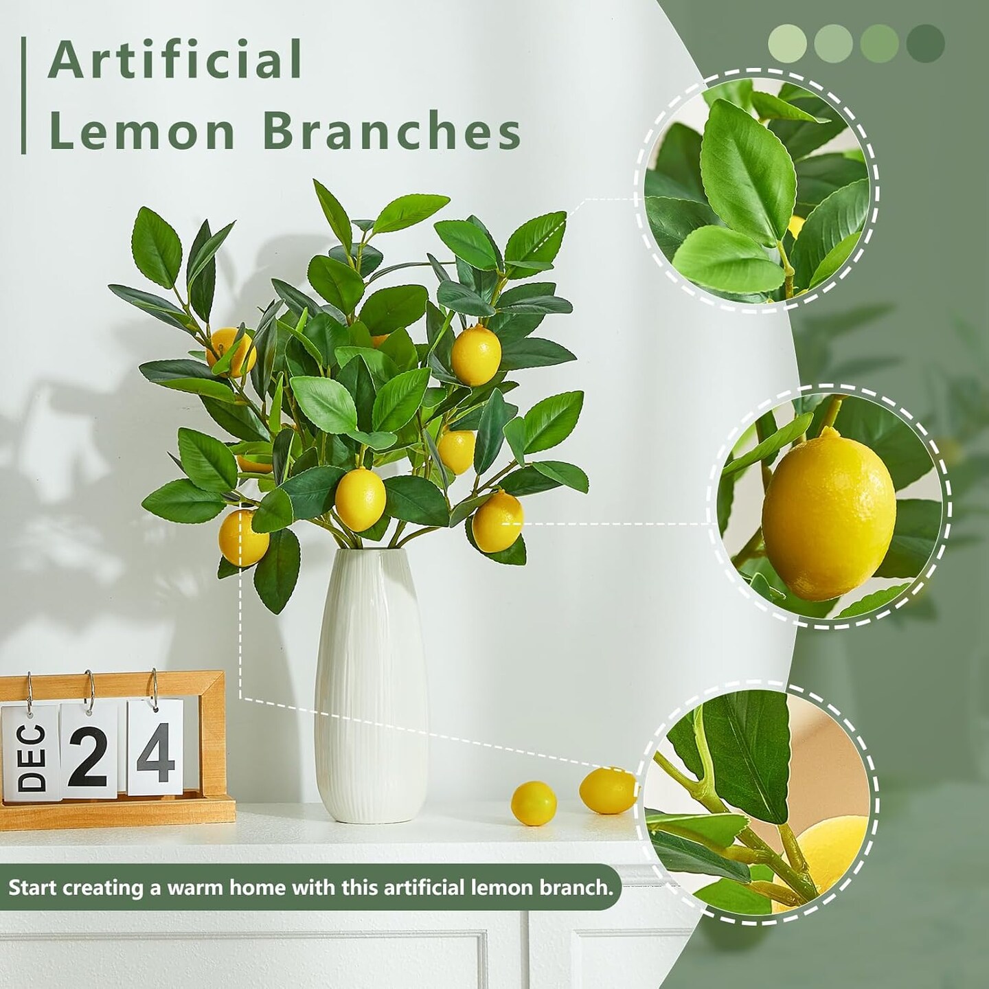 3-Pack 18-Inch Artificial Lemon Branches – Realistic Faux Lemons for Vase, Table, or Home Décor