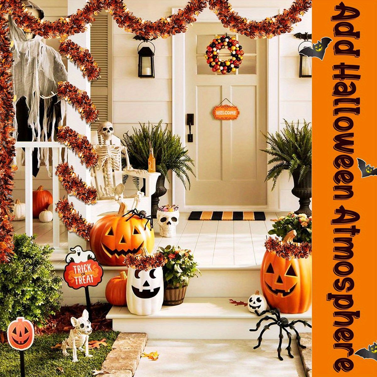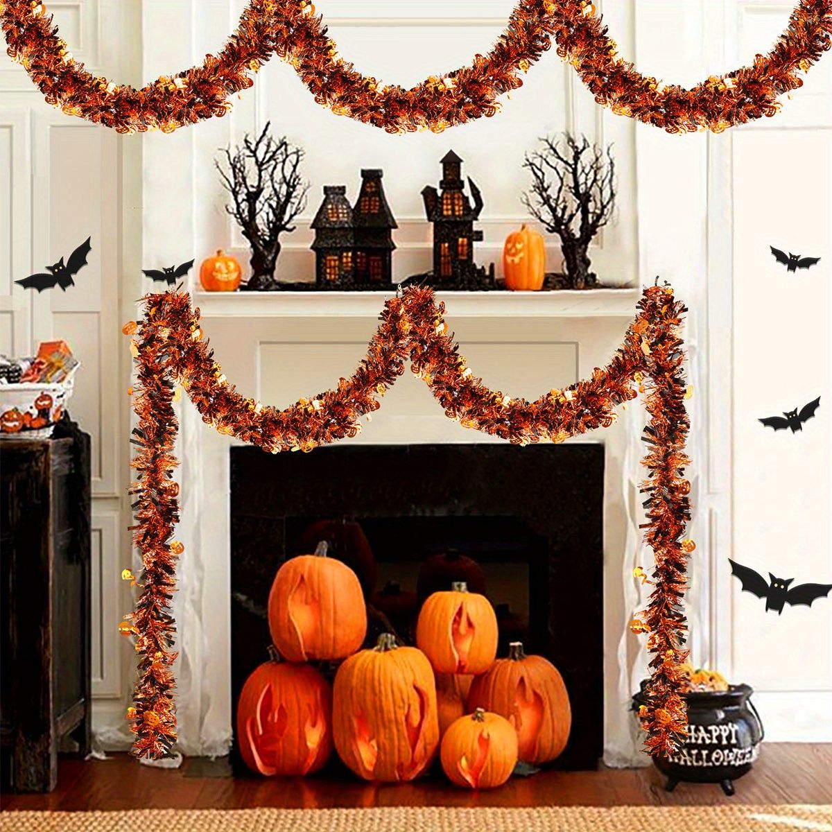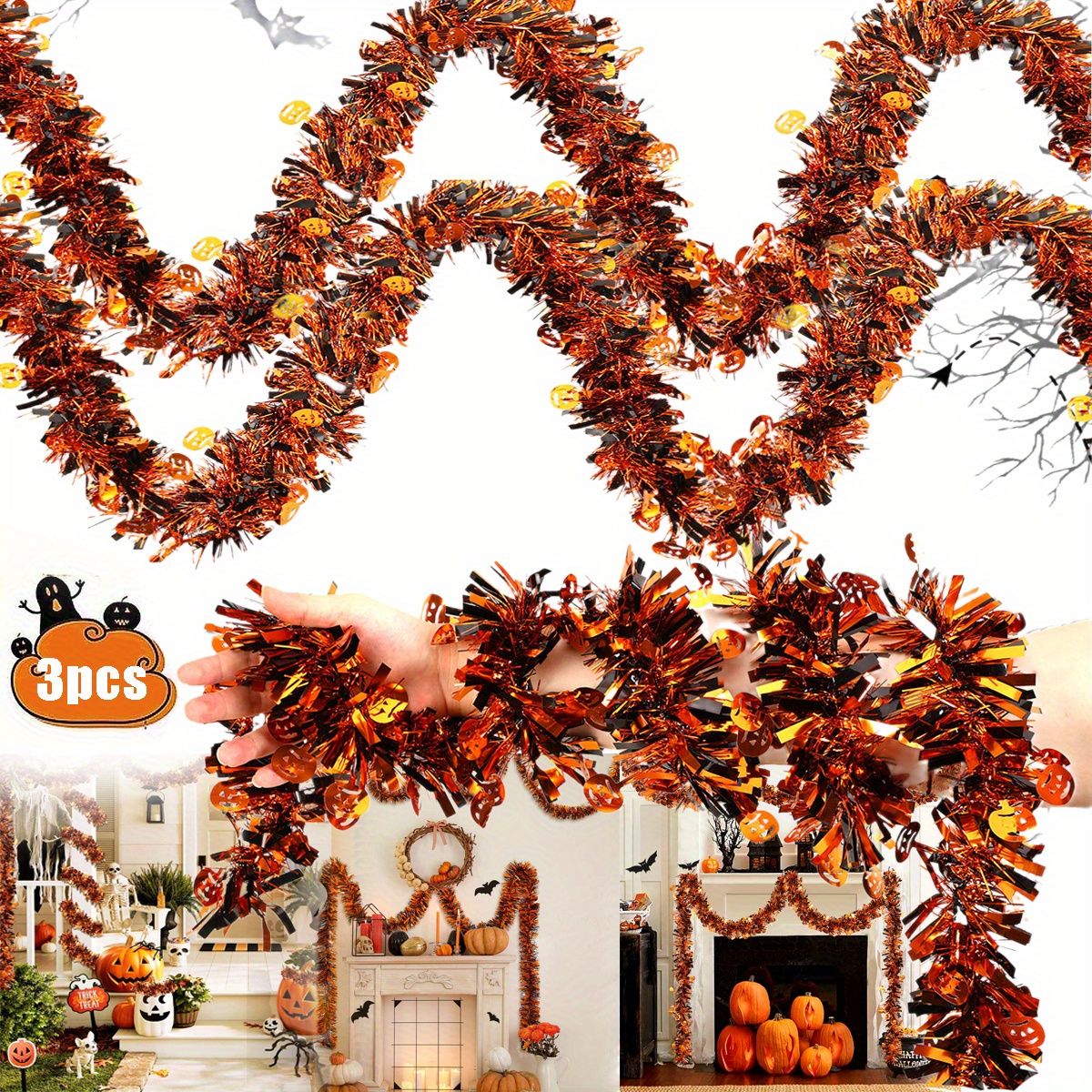 3Pack 6.56 Ft Halloween Tinsel Garland with Pumpkin Sequins Orange Black Mixed Colors Glitter Metallic Tinsel Decoration Twisted Garland for Halloween Thanksgiving Trick or Treat Fall Party Supplies