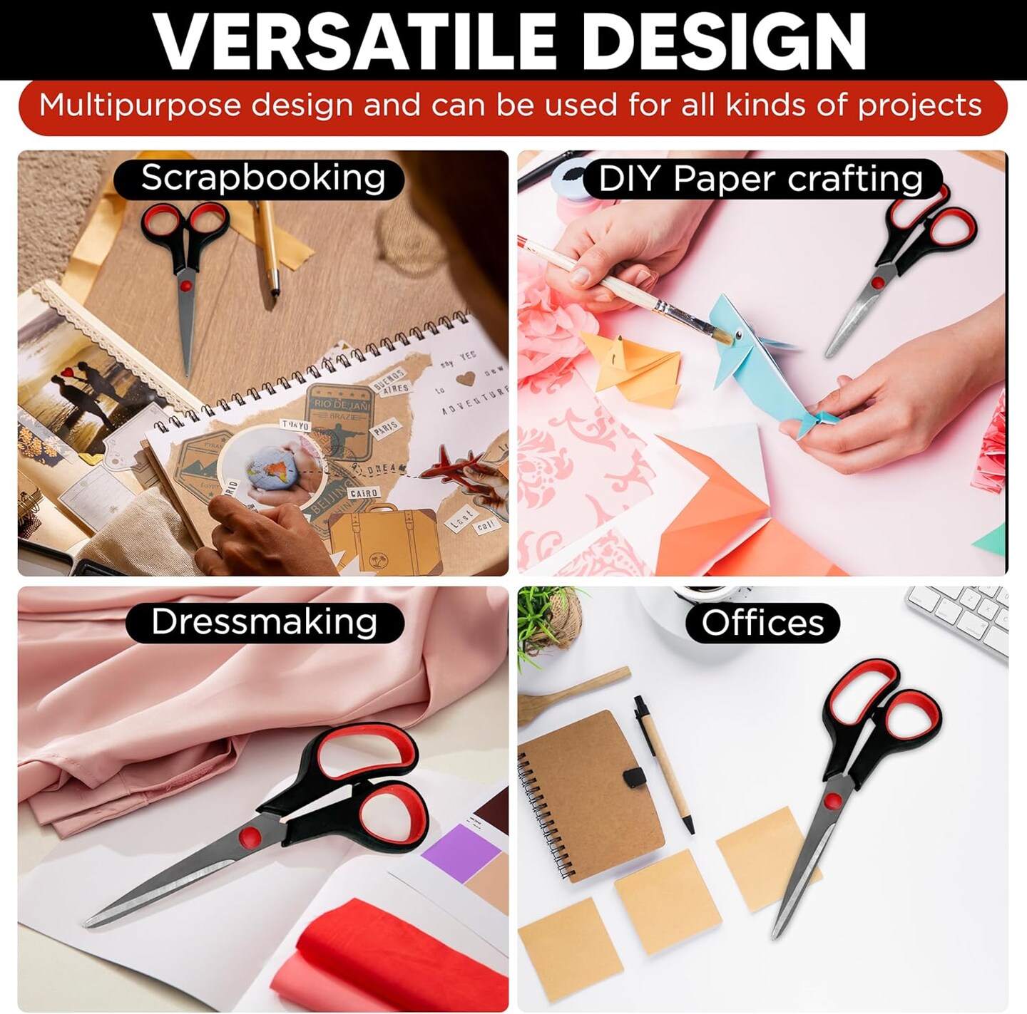 3-pack All Purpose Scissors 3 Sizes Ultra Sharp SS Blades Comfort Non-Slip Ergonomic Handle Great as Office Gifts, Home, Kitchen Shears, School, Sewing Fabrics, Crafts, And Multipurpose