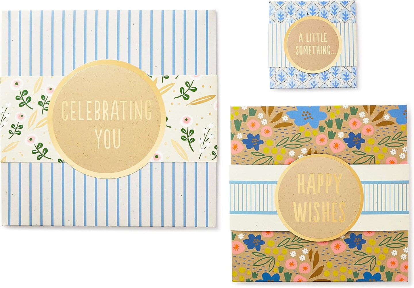 3-Pack Assorted Gift Boxes with Floral & Stripe Designs – Decorative Gift Boxes for Valentine’s Day, Birthdays, Bridal Showers & Mother’s Day (Blue, yellow)