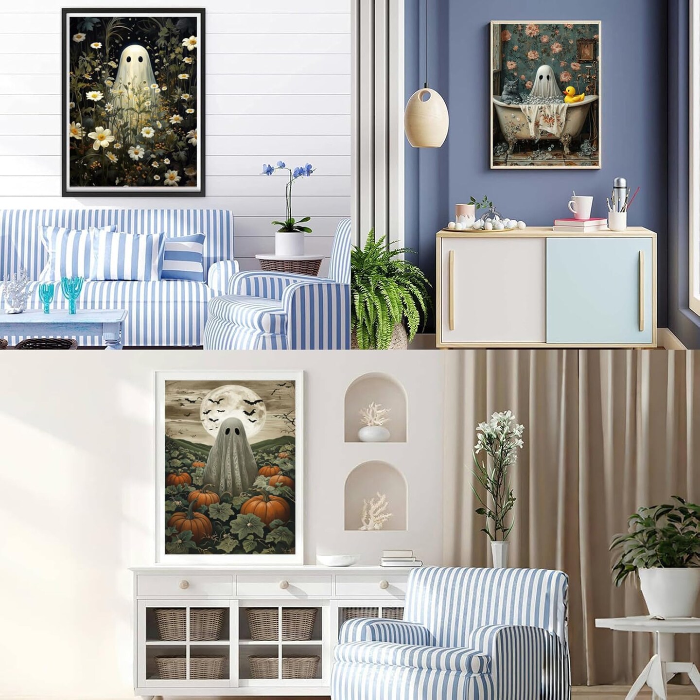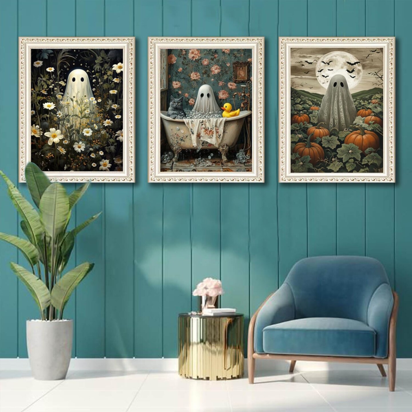 3-Pack Halloween Diamond Art Kits for Adults – 5D Full Round Drill Ghost Diamond Painting Sets, DIY Diamond Art Kits for Gifts & Home Wall Décor, 12x16 Inch
