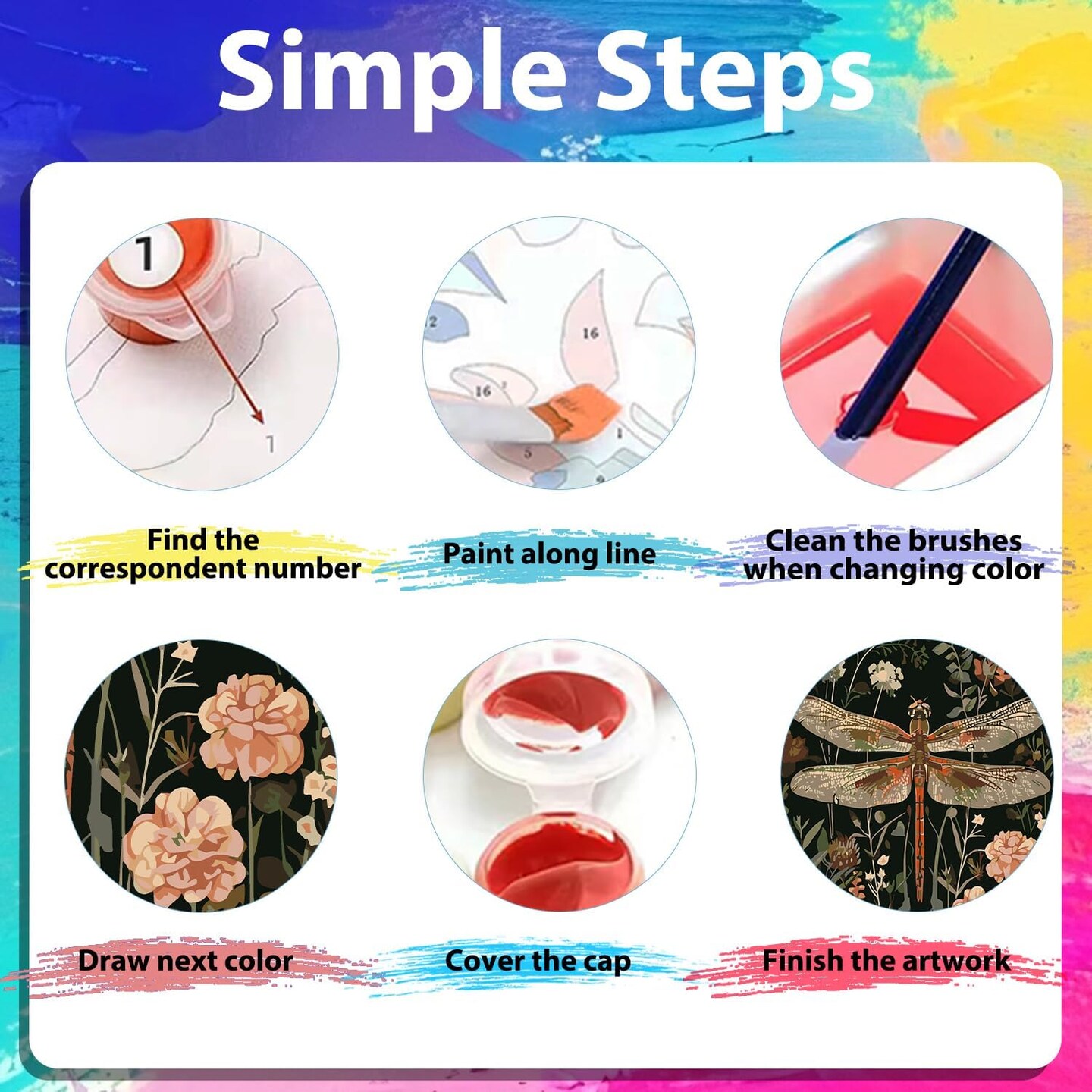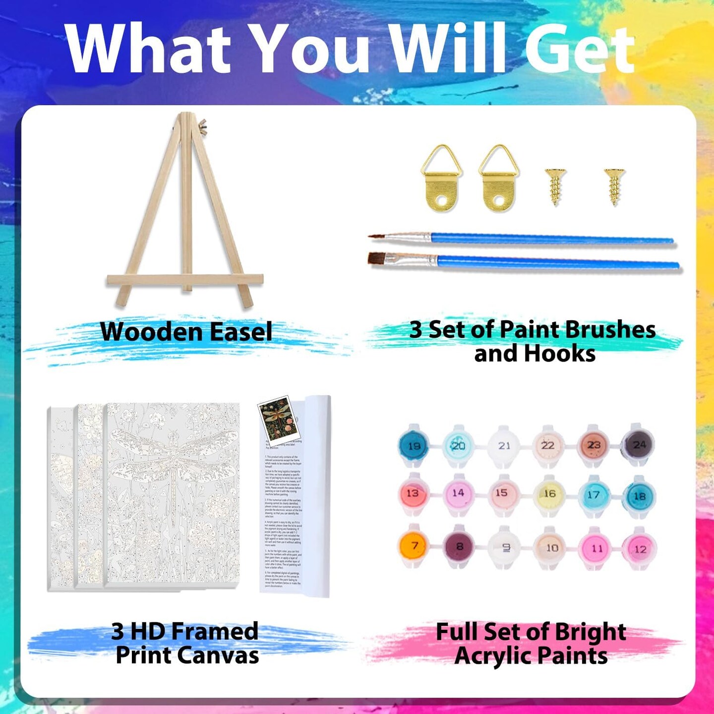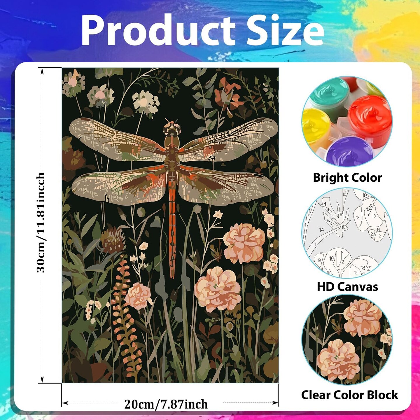 3-Pack Paint by Numbers Kits for Adults – Bee, Butterfly & Dragonfly Designs with Wooden Frame Easels – DIY Canvas Painting Set for Home Decor, Gifts, and Wall Art, 8x12 Inch