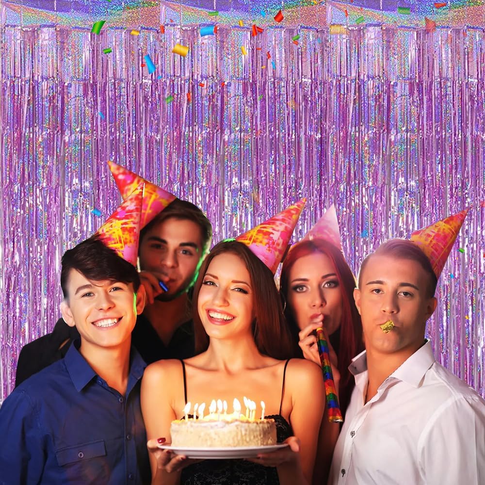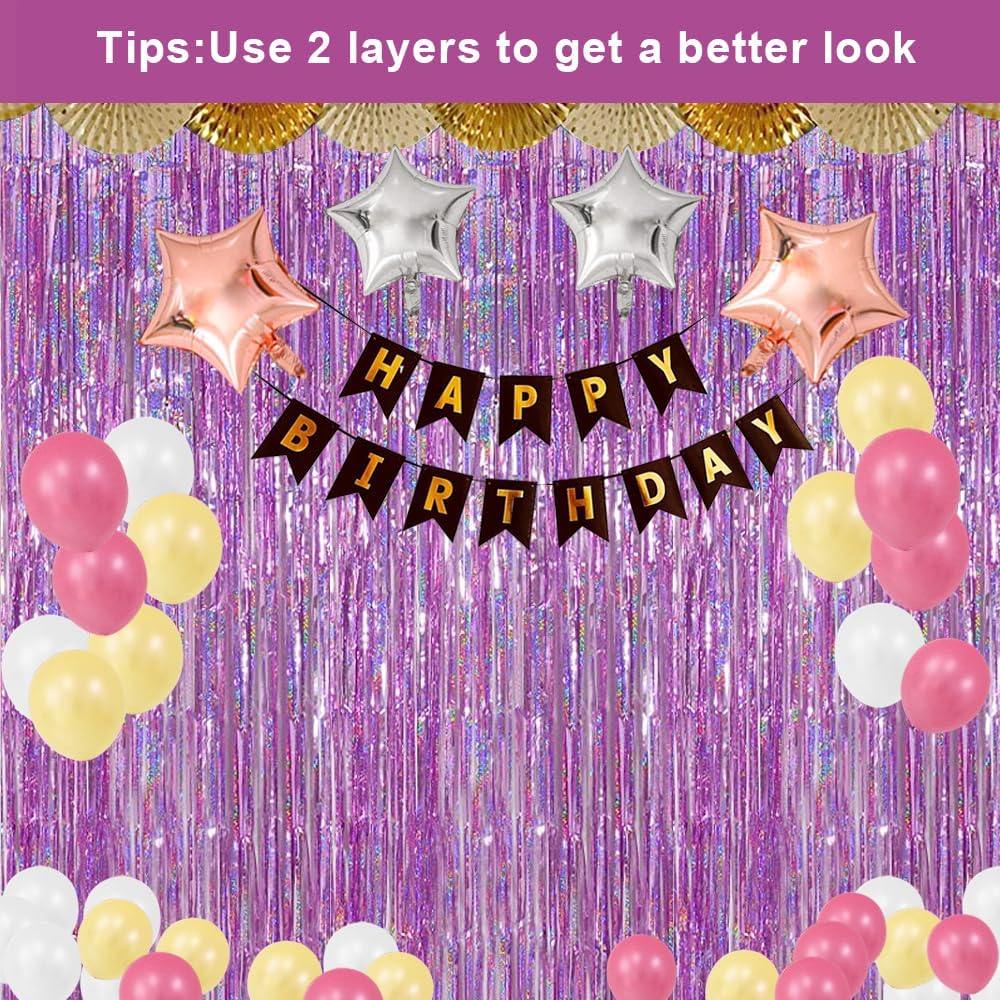 3-Pack Pink Foil Fringe Curtains Party Backdrop Decorations