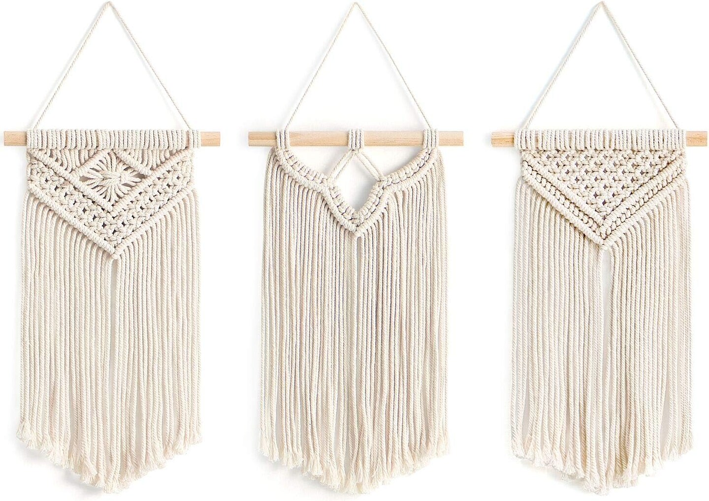 3-Pack Small Macramé Wall Hangings – Boho Woven Art Décor for Bedroom, Living Room, Apartment, or Gallery, 8" W x 14" L, Great Christmas Gift