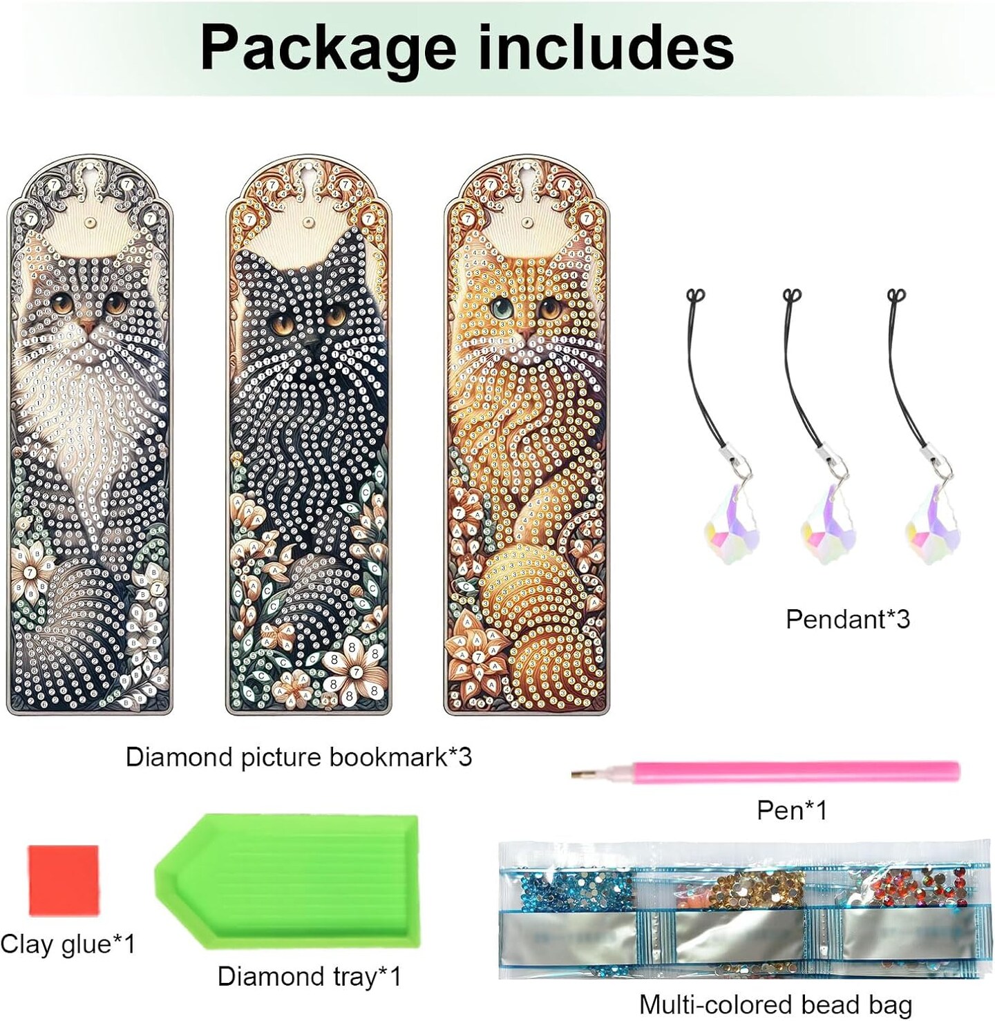 3pcs 5D Diamond Art Painting Bookmarks for Book Lovers