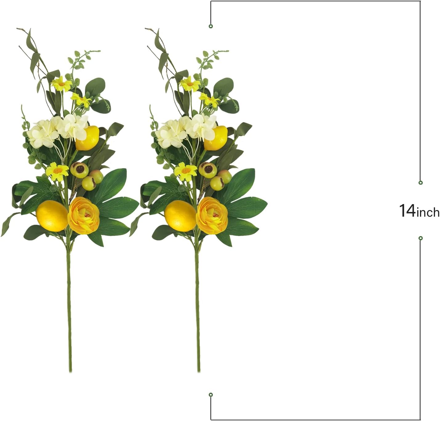3pcs Artificial Lemon Stems with Green Leaves, Faux Yellow Lemon Tree Branches, Spring Floral Picks for Home, Kitchen, Table, Party, or Vase Décor