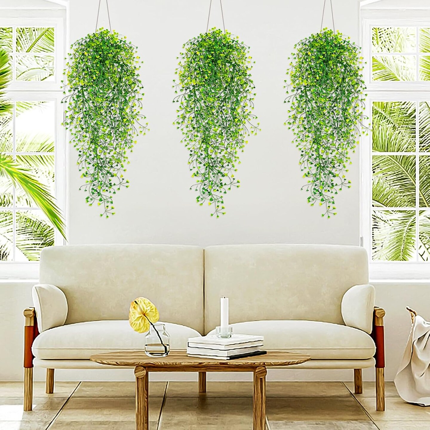 3pcs Artificial Plants Ferns Ivy Vine (Green) 9.8"D x 2"W x 4.21"H