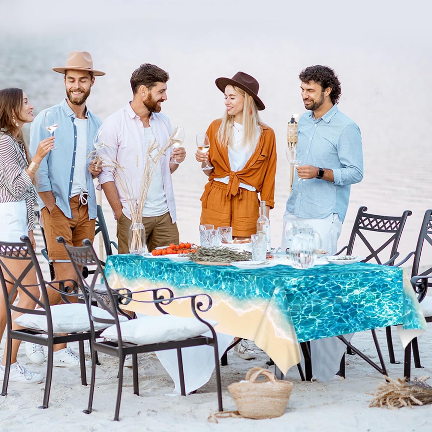 3Pcs Beach Party Birthday Decoration Summer Ocean Wave Waterproof Tablecloth (108 x 54In)