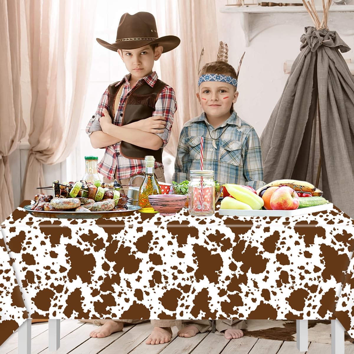 3Pcs Cow Print Tablecloths Farm Animals Brown Cow