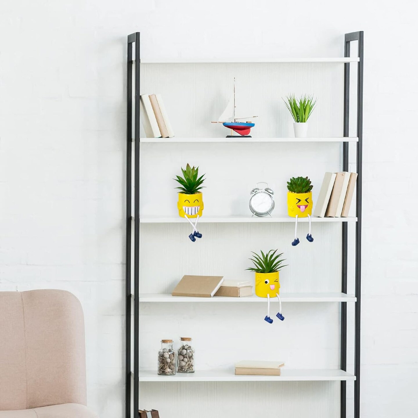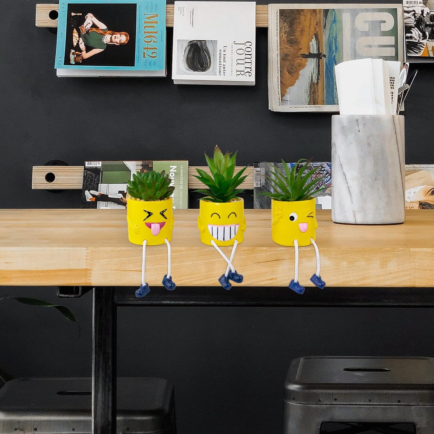 3Pcs Fake Plant Faux Succulents Cute Hanging Leg Potted, Creative Artificial Succulent Plants with Pots, Mini Vibrant Yellow Potted Succulents for Home/Office/Shelf Decor