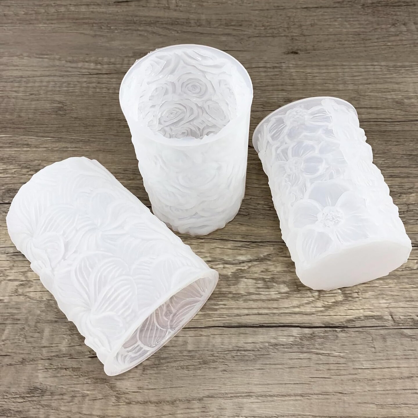 3pcs Flower Cylinder Candle Silicone Molds(Style -1)