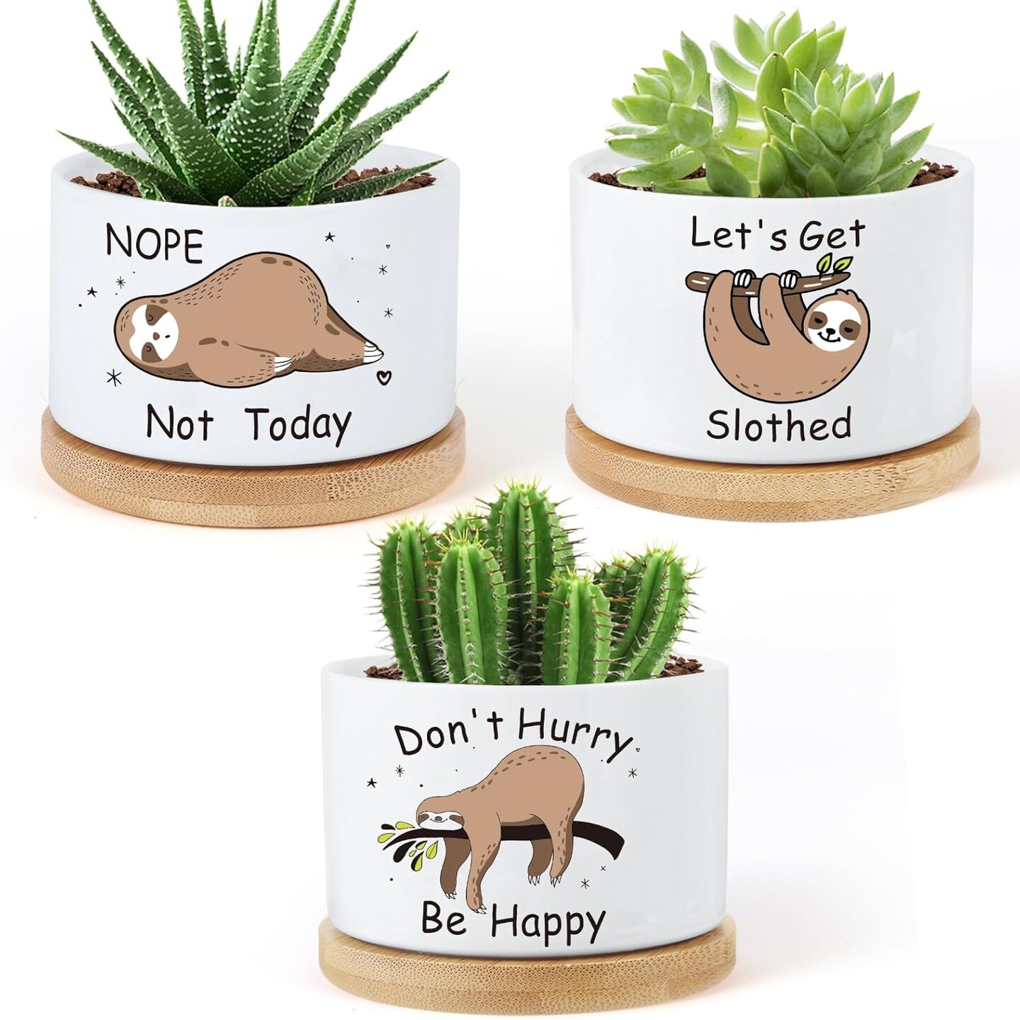 3PCS Funny Printed Ceramic Plant Pots – Succulent Planters with Drainage & Saucers, Gift for Women