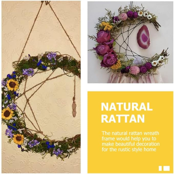 3pcs Grapevine Wreath Rings Moon Shape Rattan Vine Branch Wreath Grapevine Garland Decoration for DIY Craft Easter Wedding Party Decors