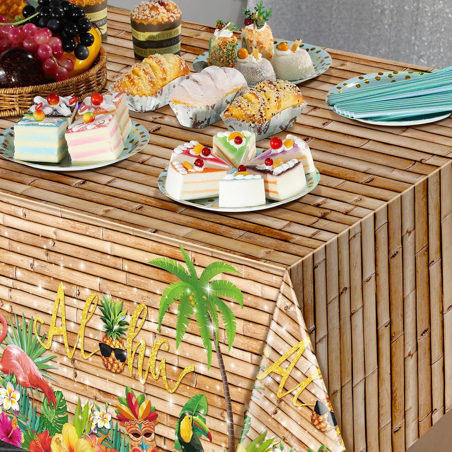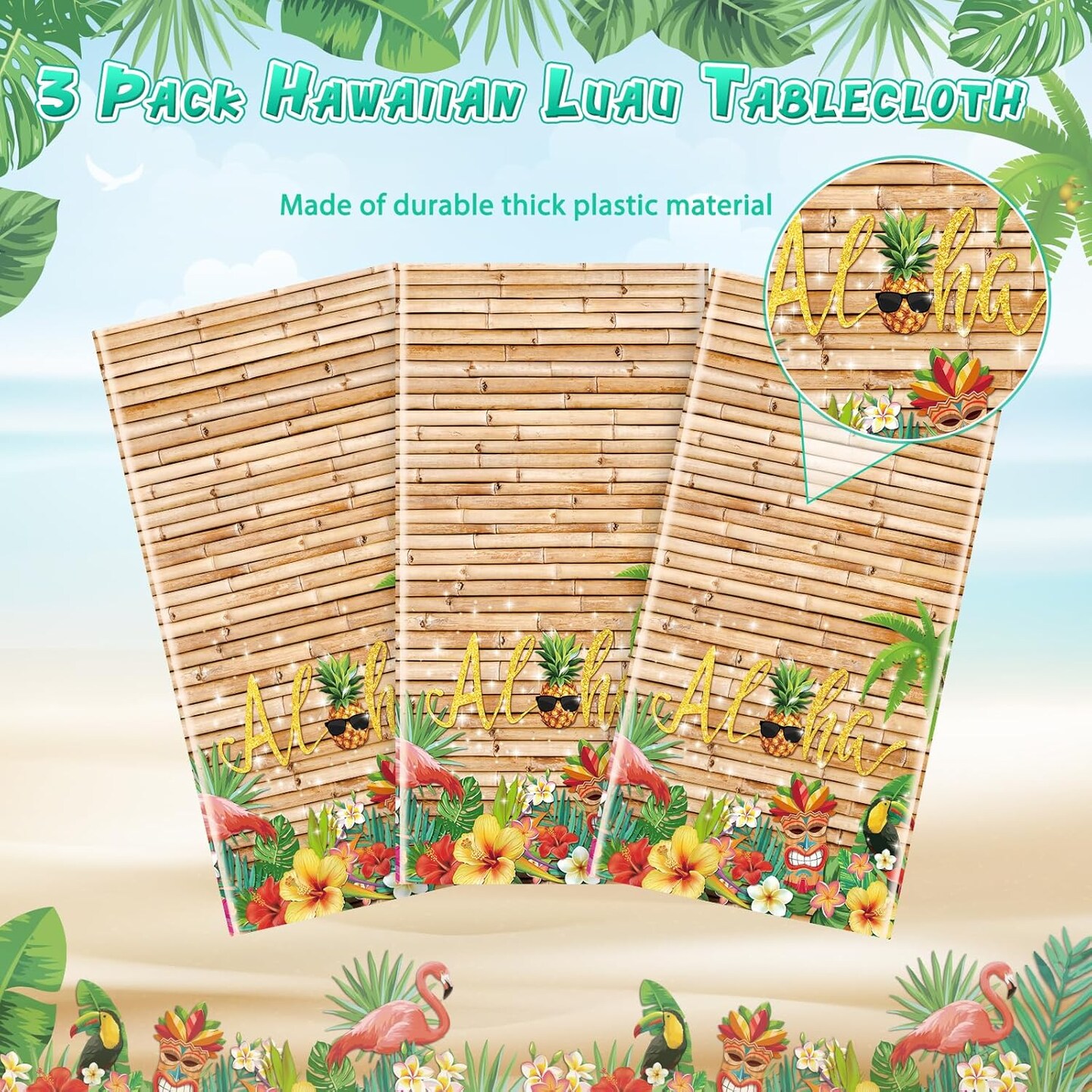 3Pcs Hawaiian Luau Tablecloth Tiki Party Tablecloths Tropical Table Cloth