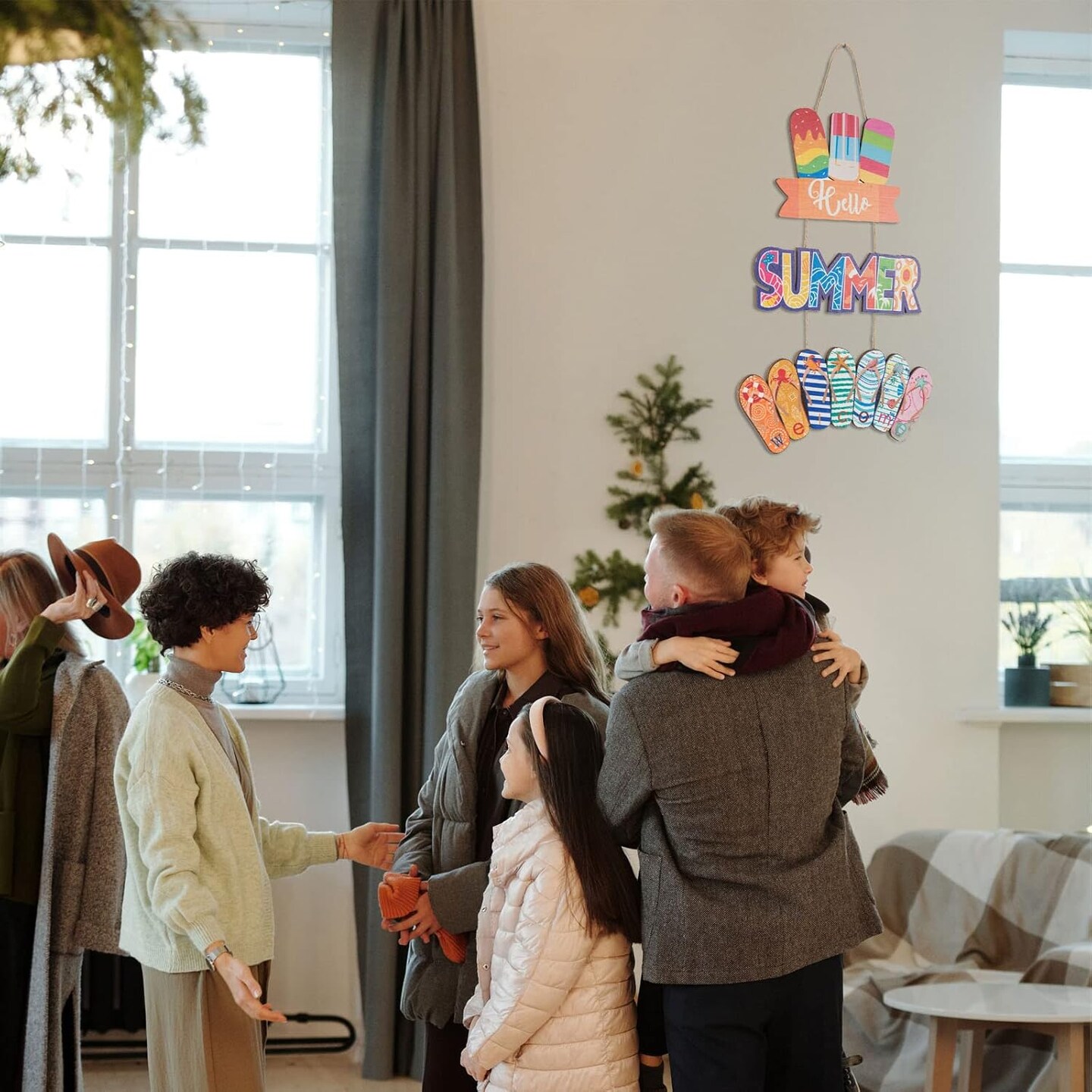 3Pcs Hello Summer Hanging Door Sign Decor Beach Welcome Sign Plaque Wooden Summer Home Decor Ice Cream Slippers Beach Hanging Decor With Ropes for Farmhouse Wall Beach Theme Indoor Outdoor Garden Yard