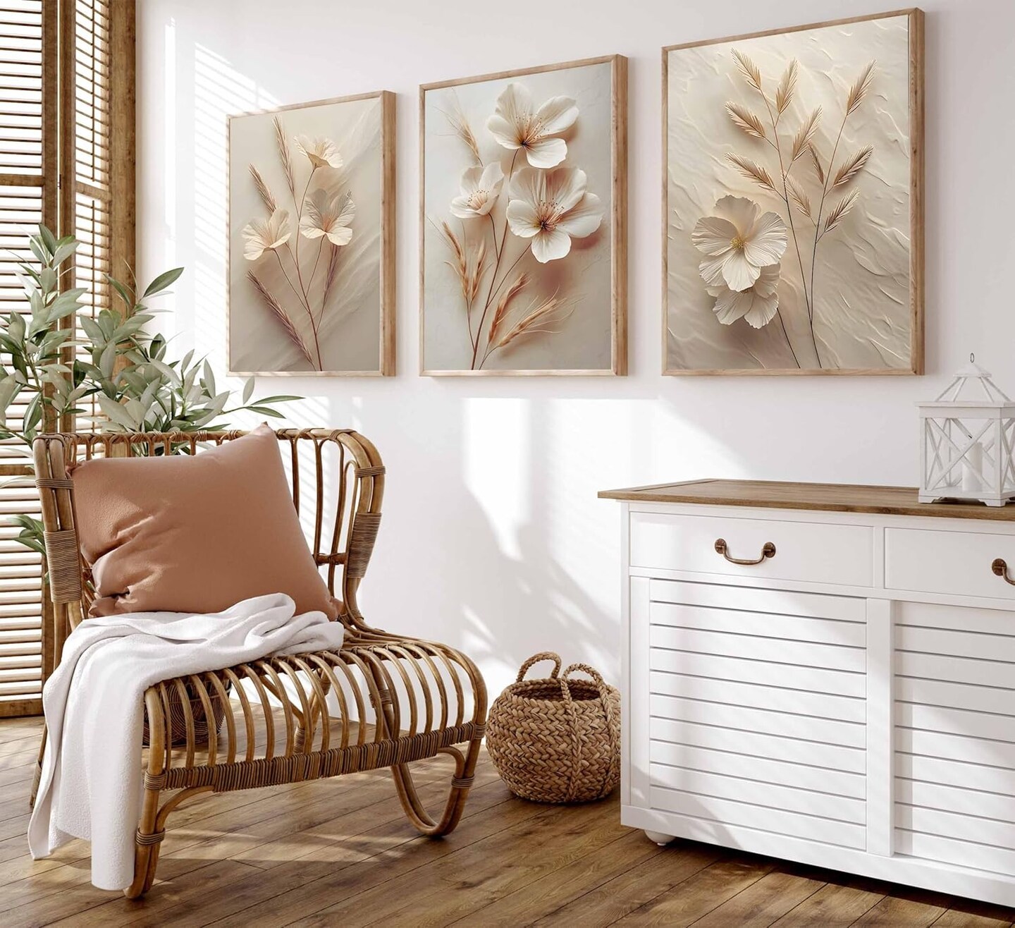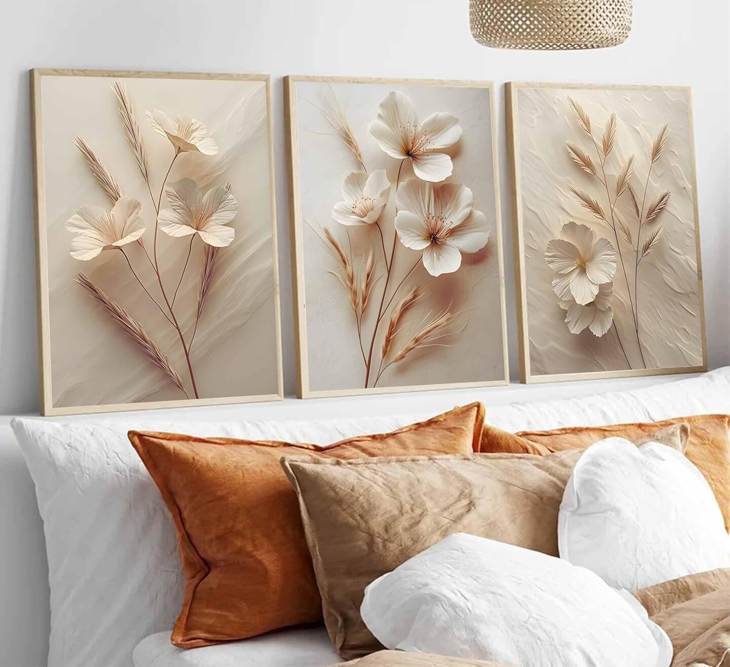 3Pcs Neutral Beige Floral Botanical Canvas Wall art Modern Simple Texture Flower Plant Painting Picture Wall Decor Vintage Blossom Poster Print Artwork for Living Room Bedroom Bathroom Unframed
