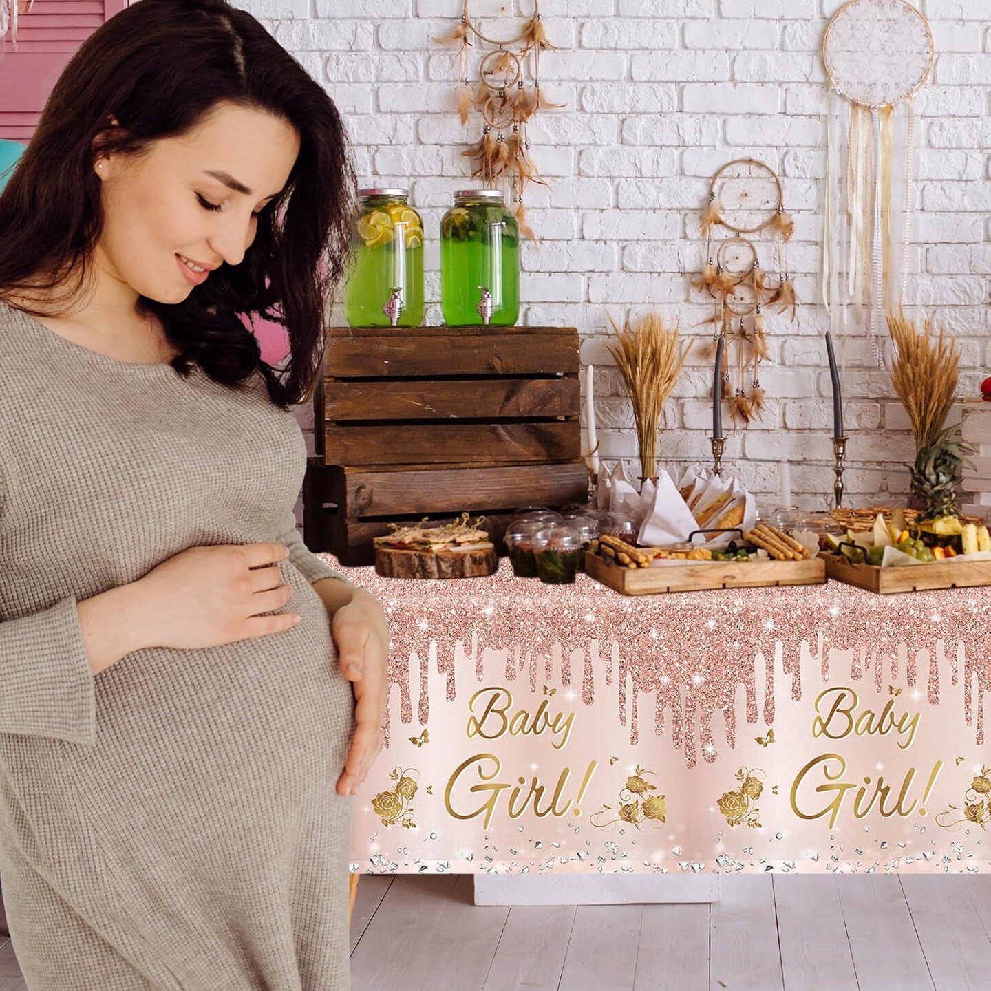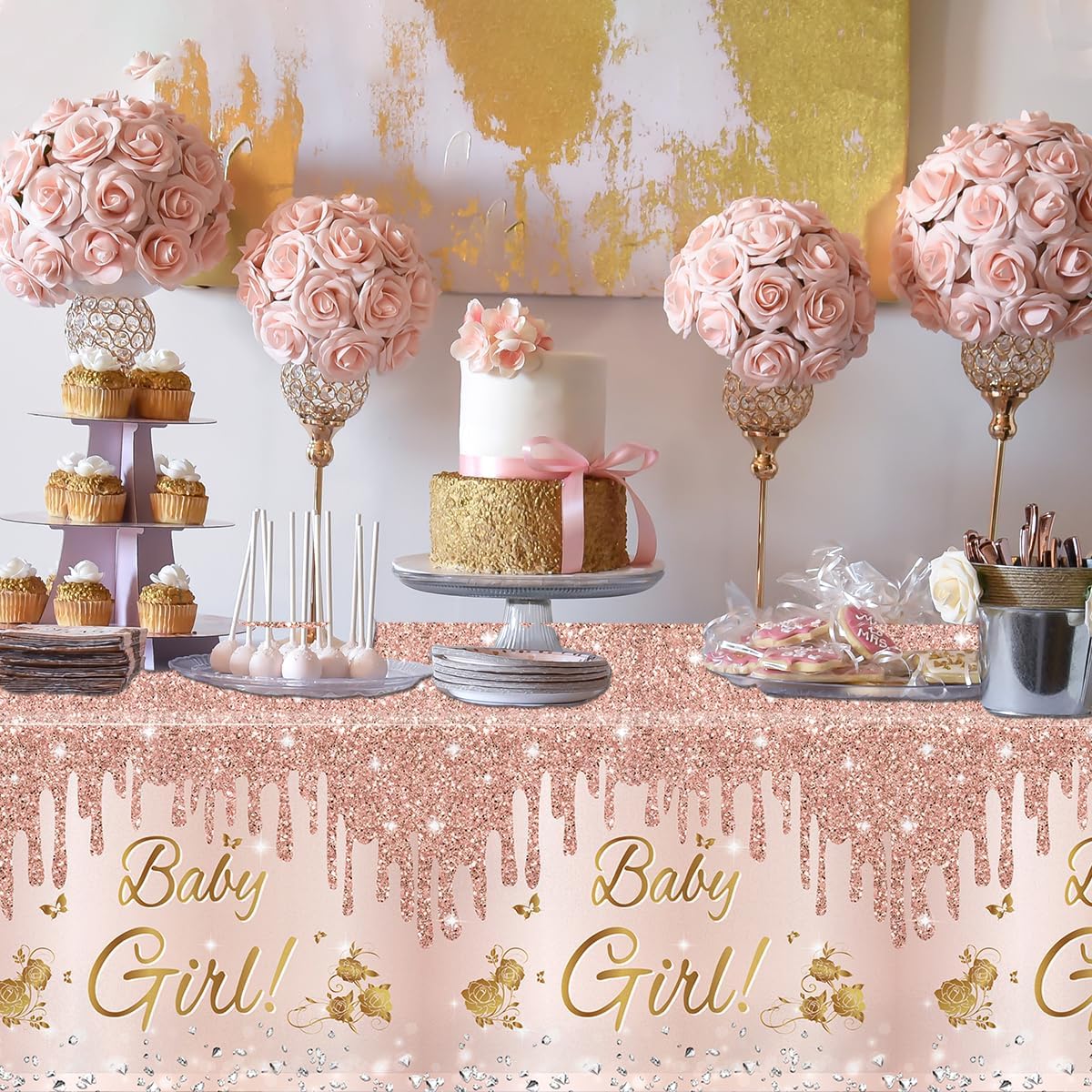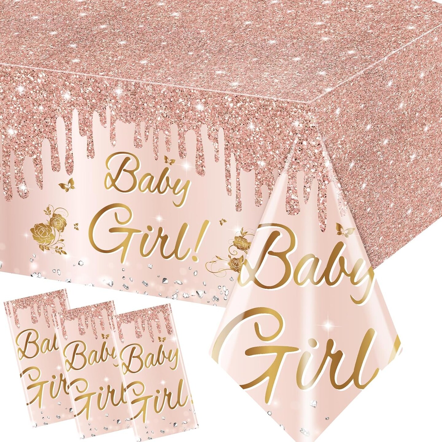 3Pcs Pink and Gold Baby Shower Tablecloth
