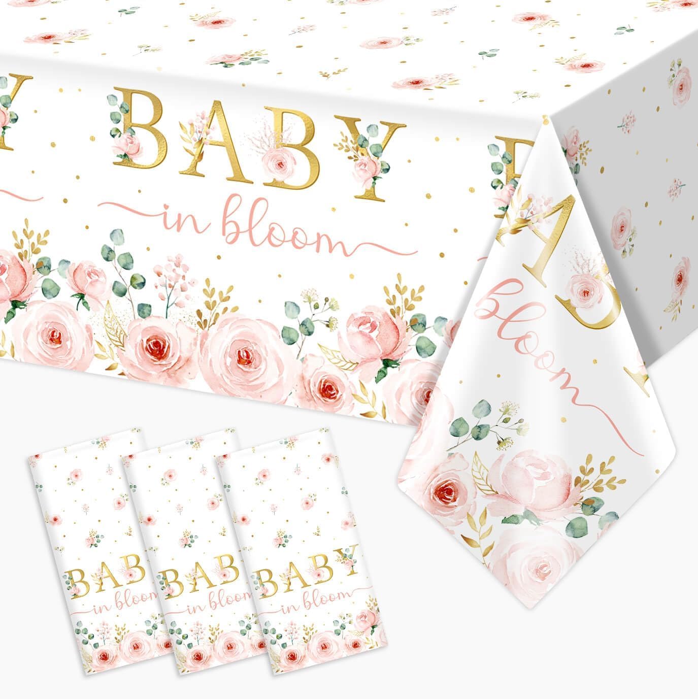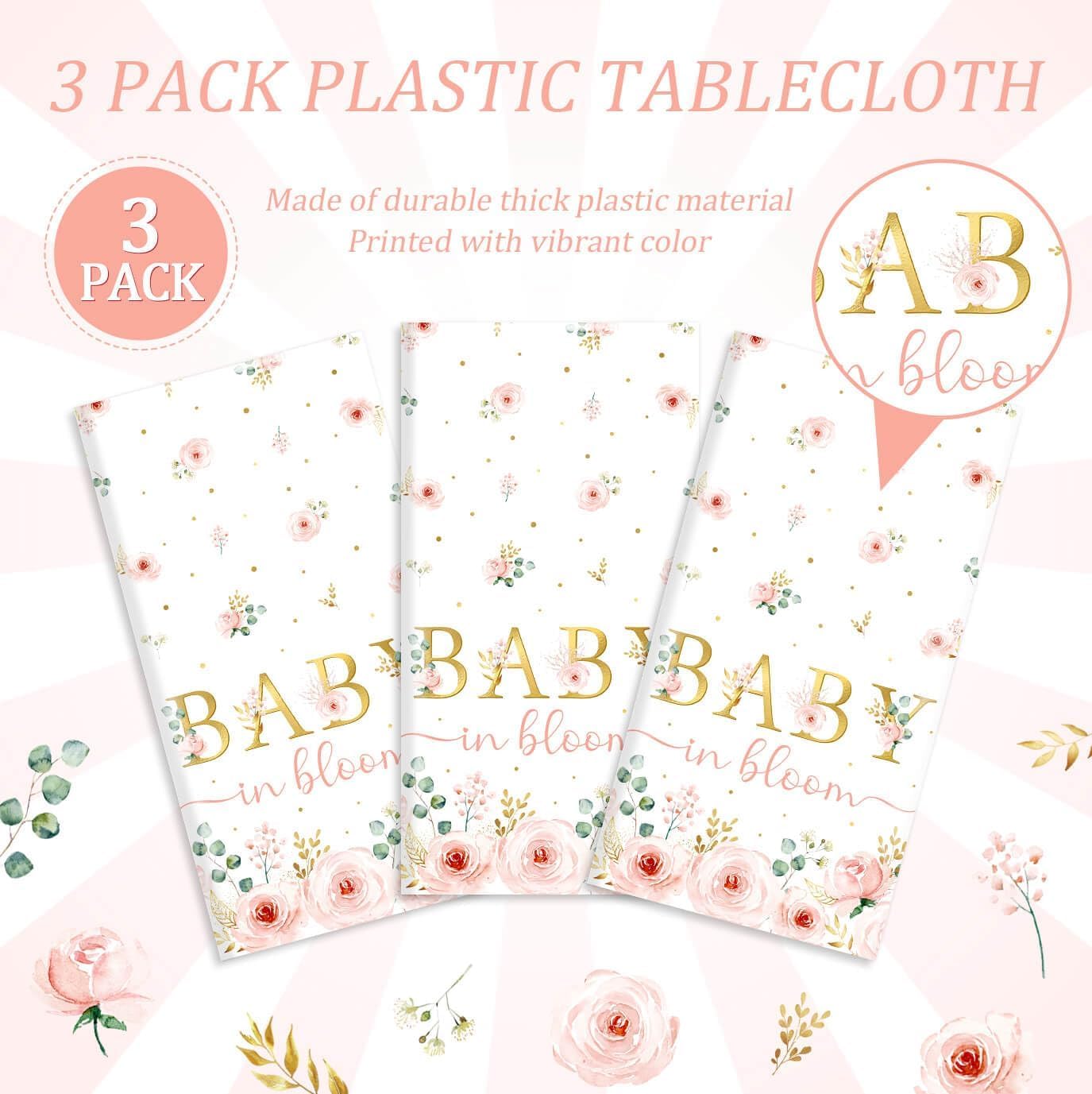 3pcs Pink Floral Baby Shower Table Cover