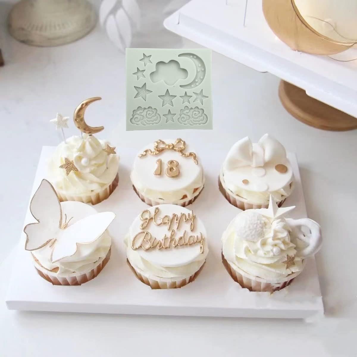 3Pcs Star Moon Clouds Shaped Silicone Fondant Molds