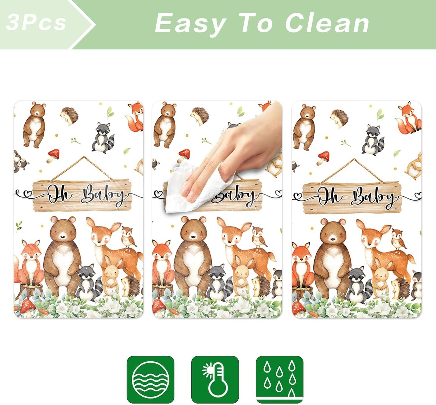 3pcs Woodland Animals Tablecloth