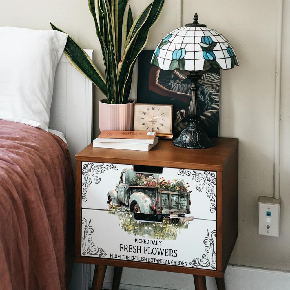 3pcs/Set Vintage Truck Flowers Rub on Transfer Stickers 11.8x5.9 Inch