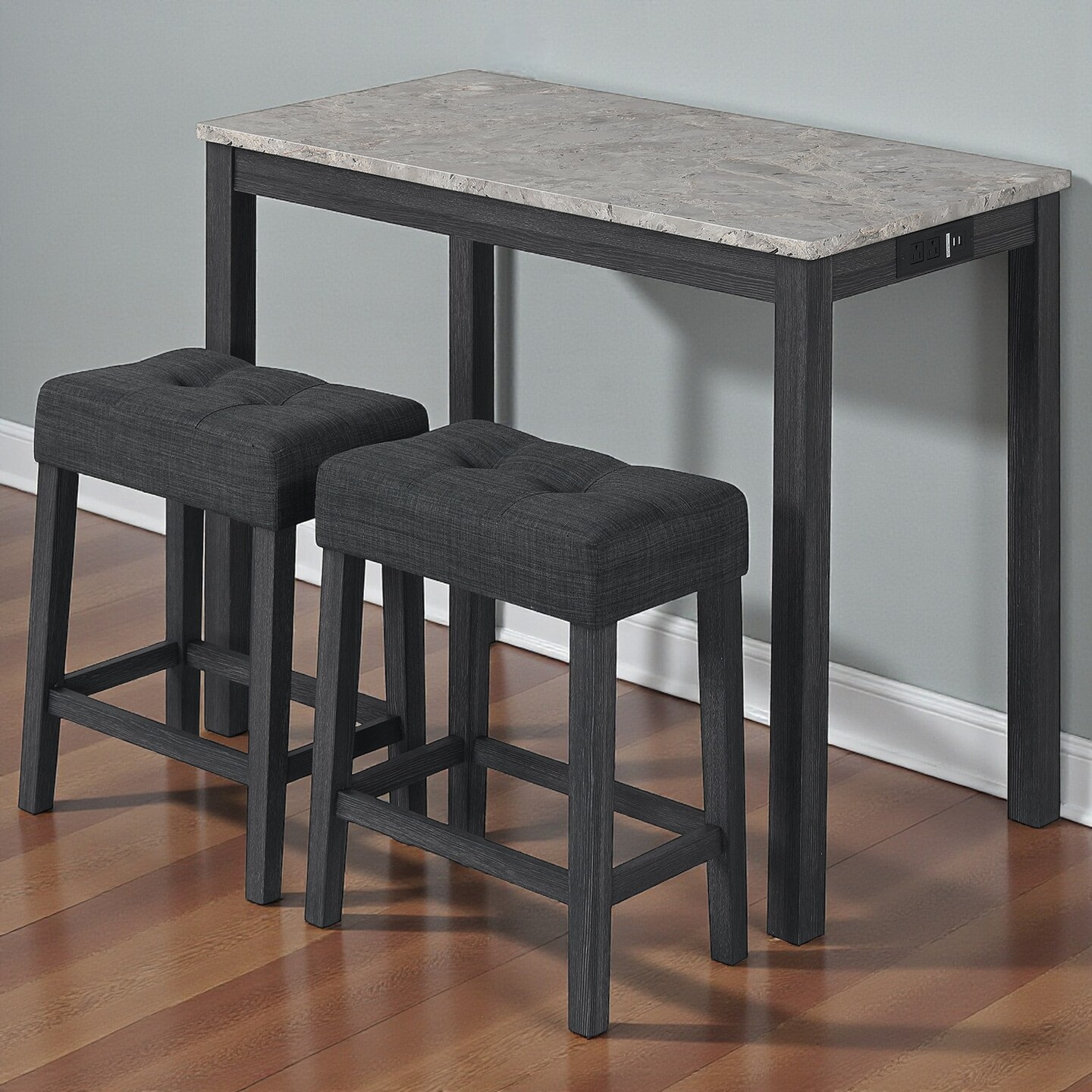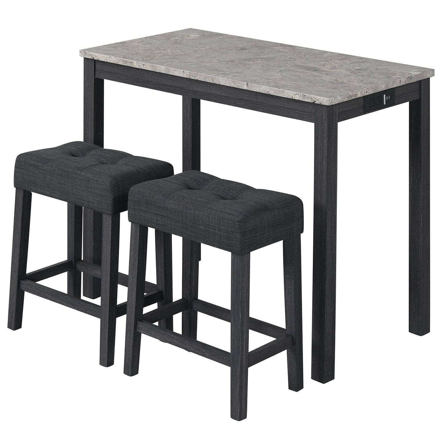 3-Piece Counter Height Bar Table Set with Power Outlet & Marble Top