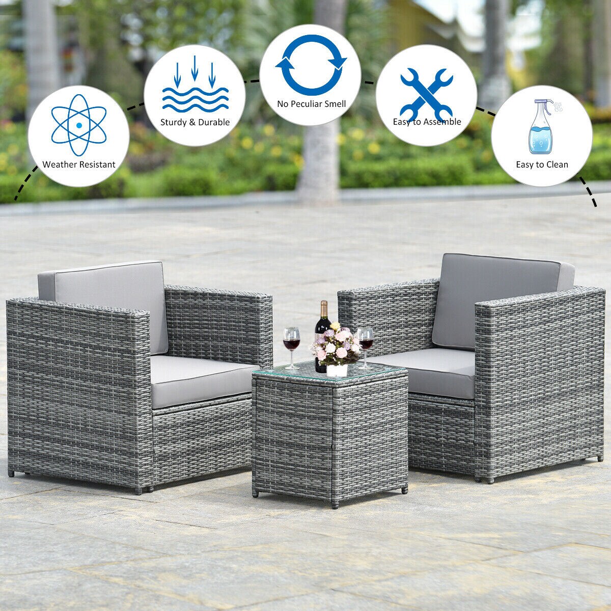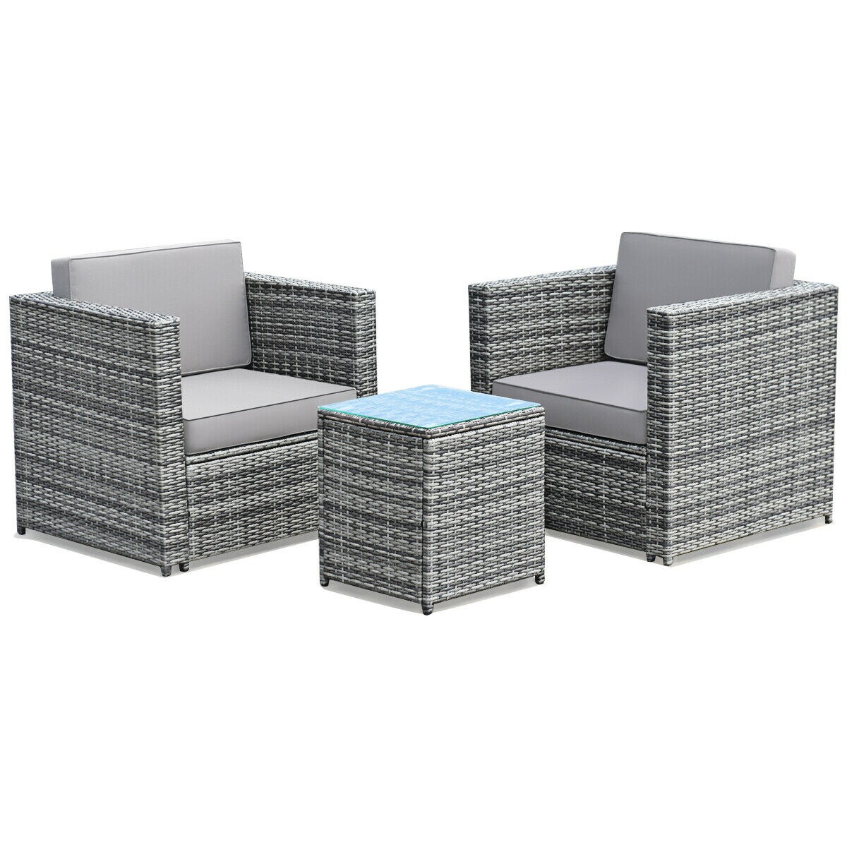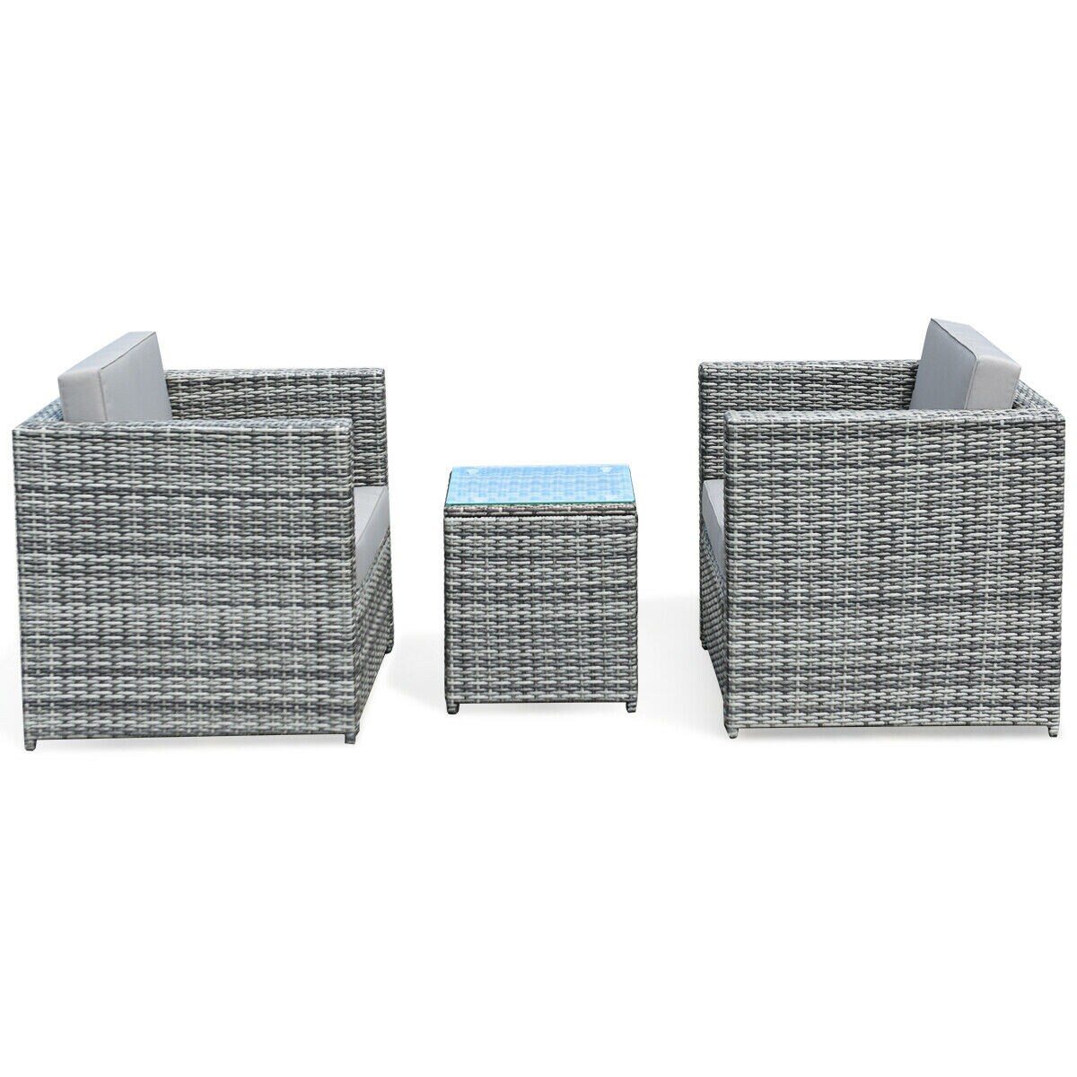 3-Piece Grey Outdoor Sofa Set with High-Quality Rattan & Steel Frame