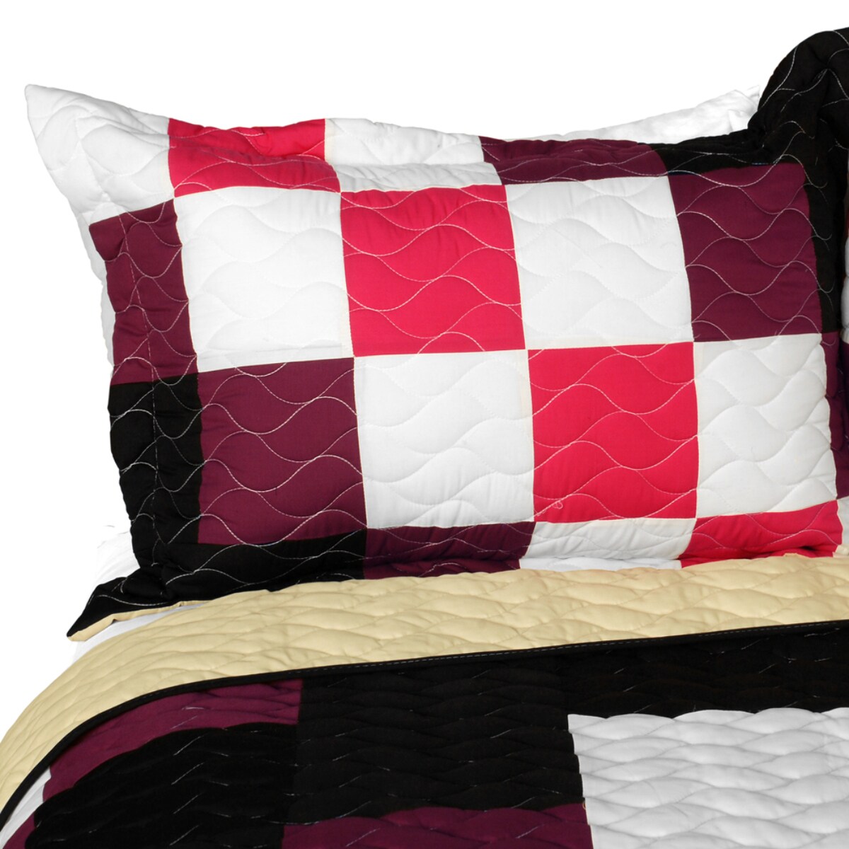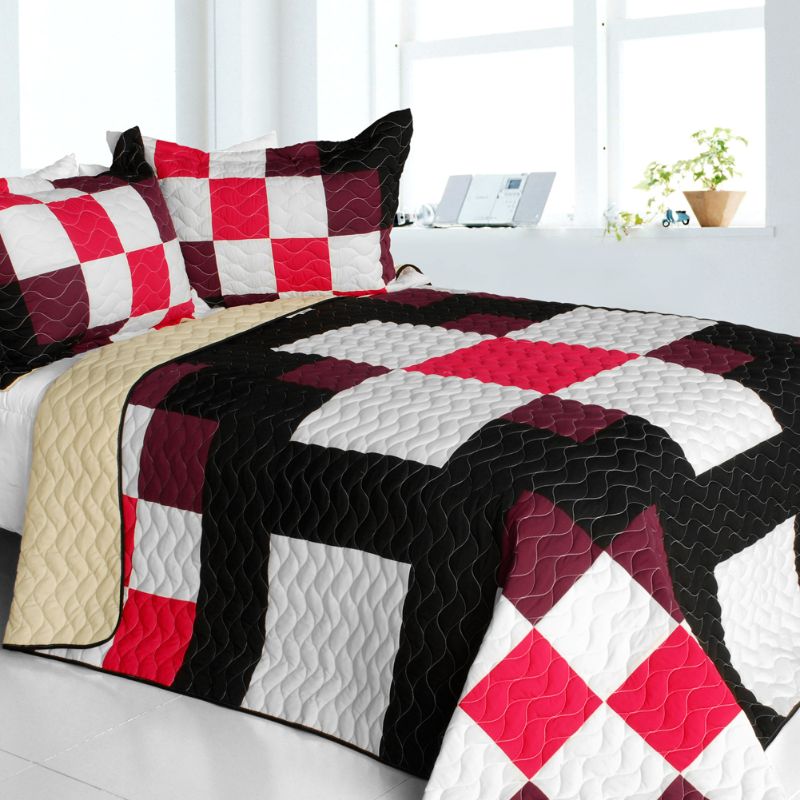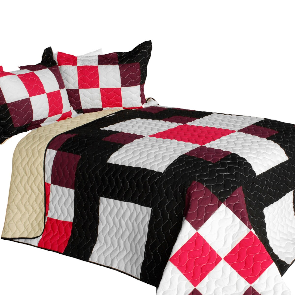 3-Piece Handmade Full/Queen Quilt Set, TC Fabric Geometric Patchwork, Vermicelli Quilted