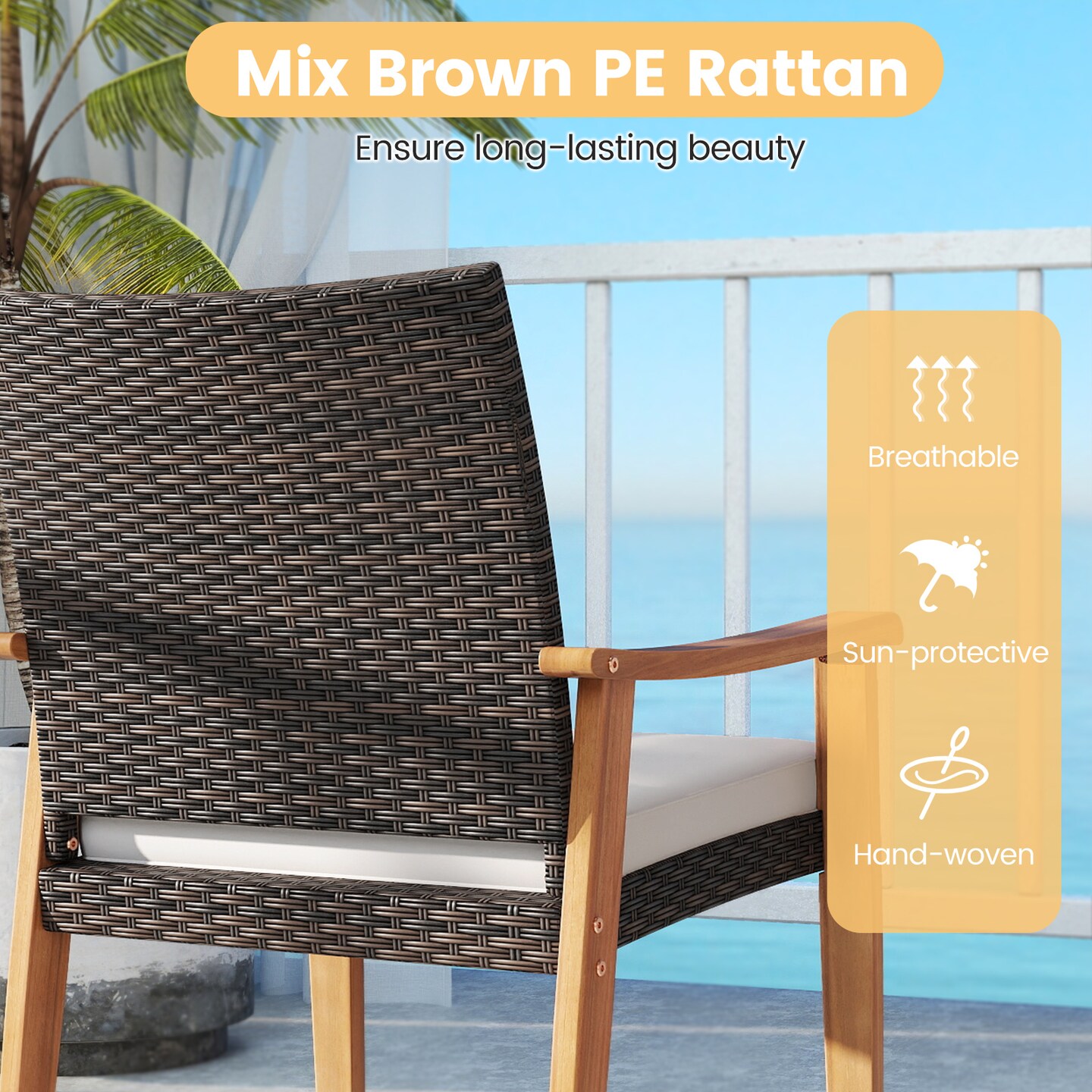 3-Piece Outdoor Bistro Set – PE Wicker with Acacia Wood Table and Chairs