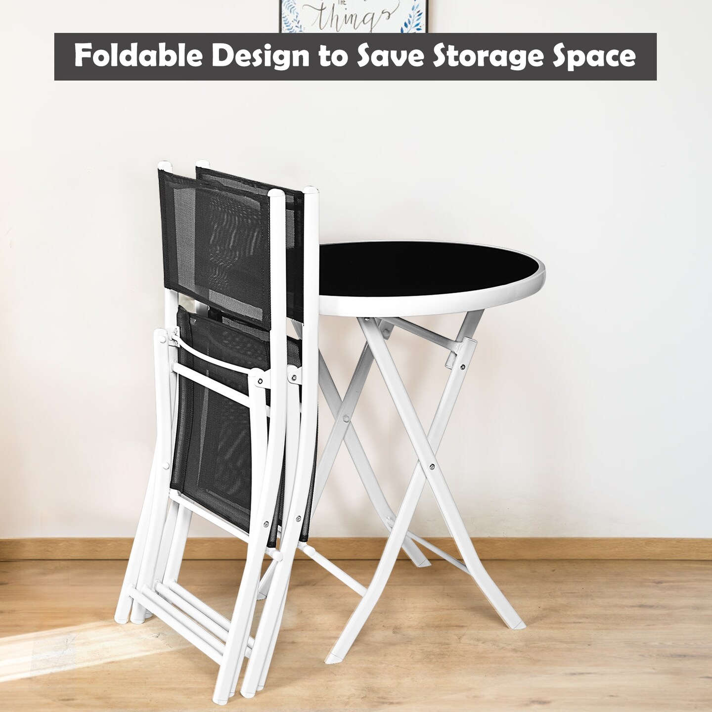 3-Piece Patio Bistro Set Folding Table and 2 Chairs Balcony Outdoor Furniture