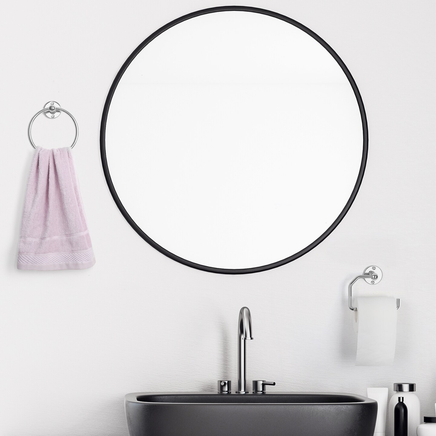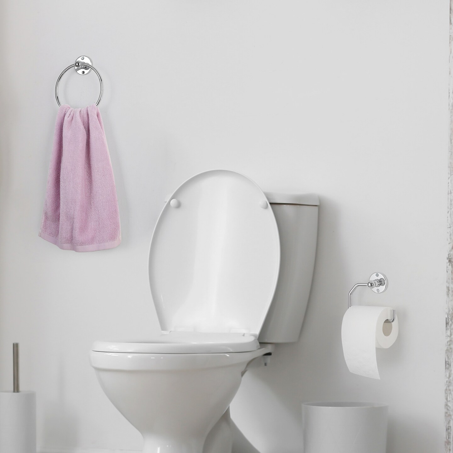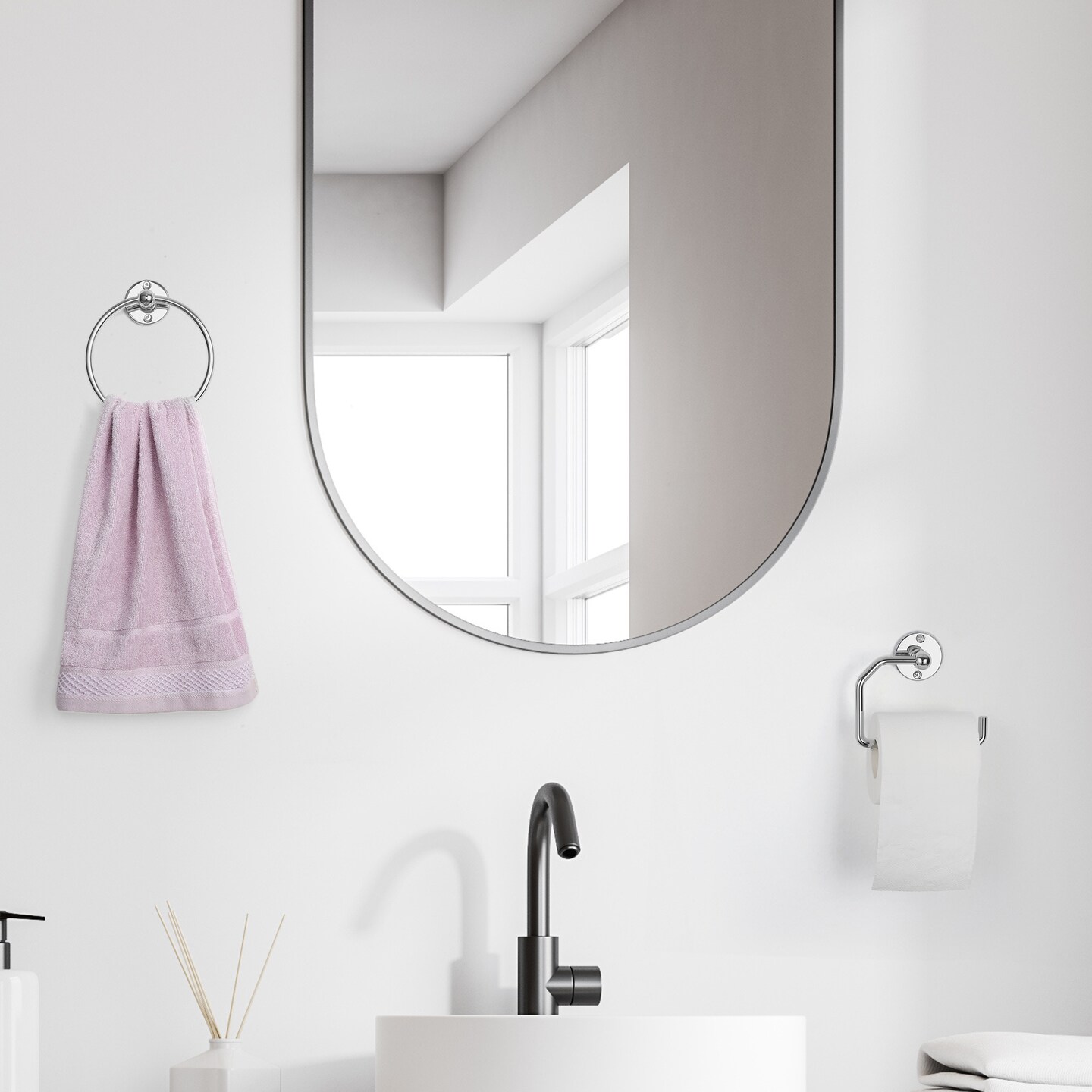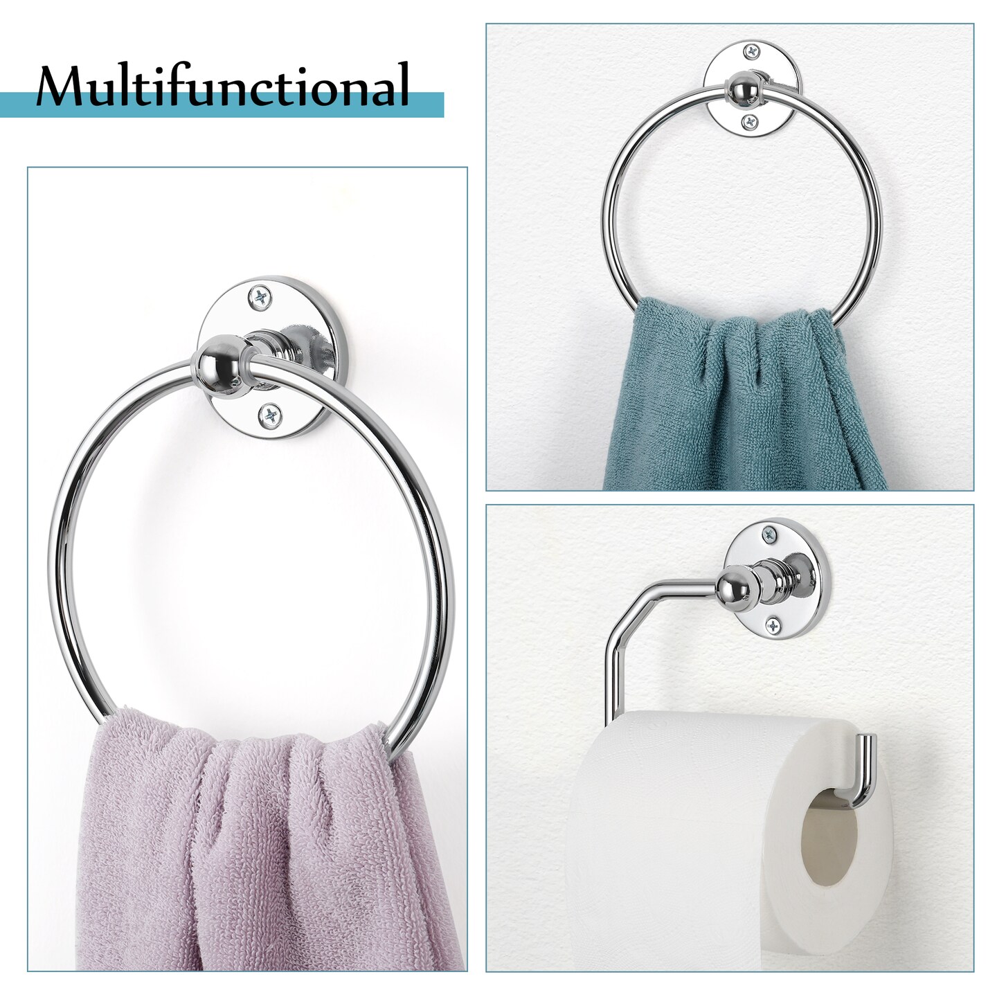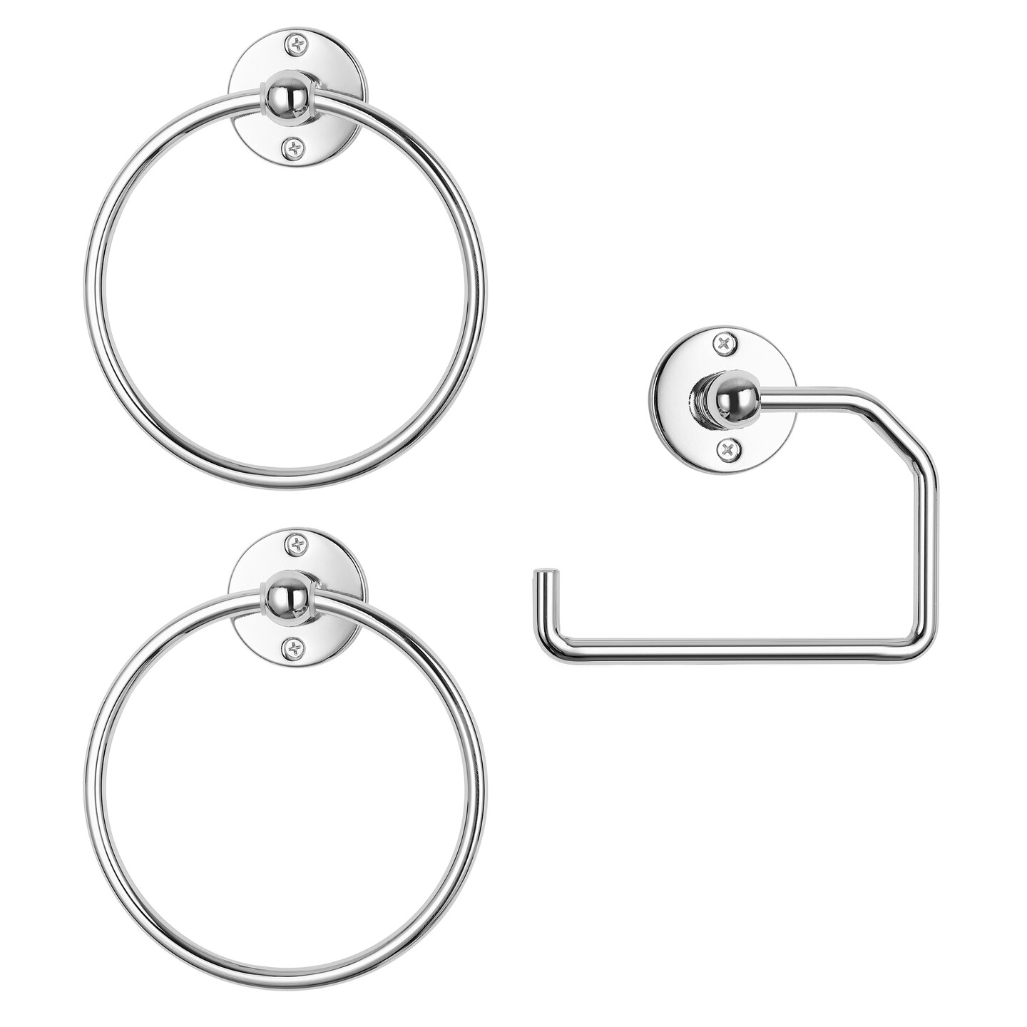 3-Piece Rustproof Bathroom Accessories Set Modern Toilet Paper Holder + 2 Towel Rings for Stylish Bathroom Storage Easy Install