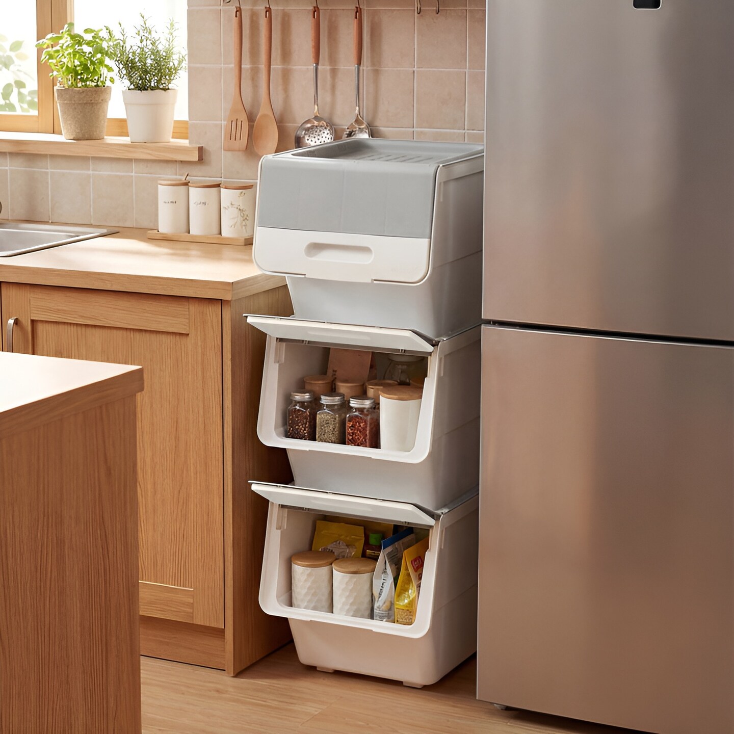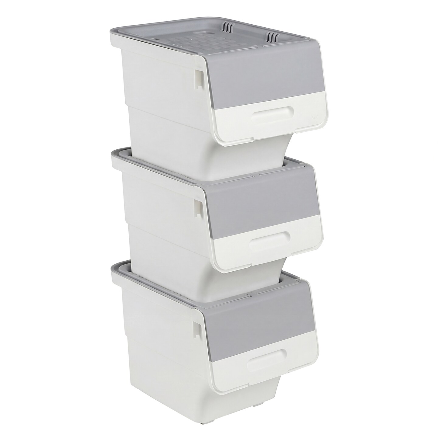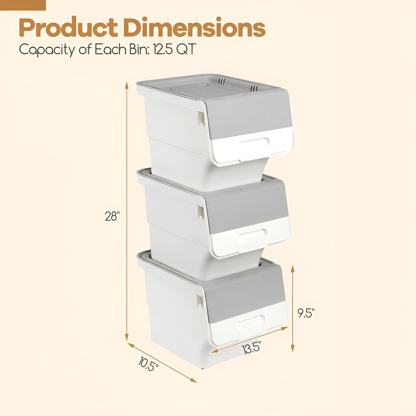 3-Piece Stack able Wheeled Storage Bins with Stay-Open Lids