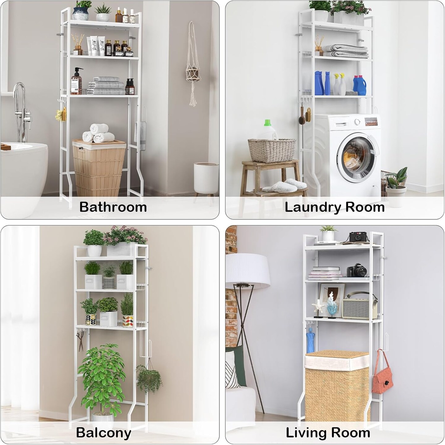 3-Tier Industrial Over-The-Toilet Storage Shelf | Freestanding Bathroom Organizer with Toilet Paper Holder & 4 Hooks | Heavy-Duty Metal Wire Rack, Space-Saving Brown Design