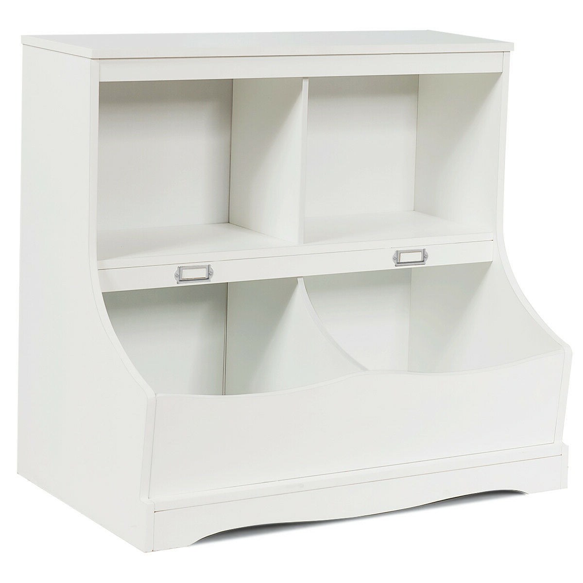 3-Tier Kids Bookshelf Storage Organizer with Top Surface and Bins