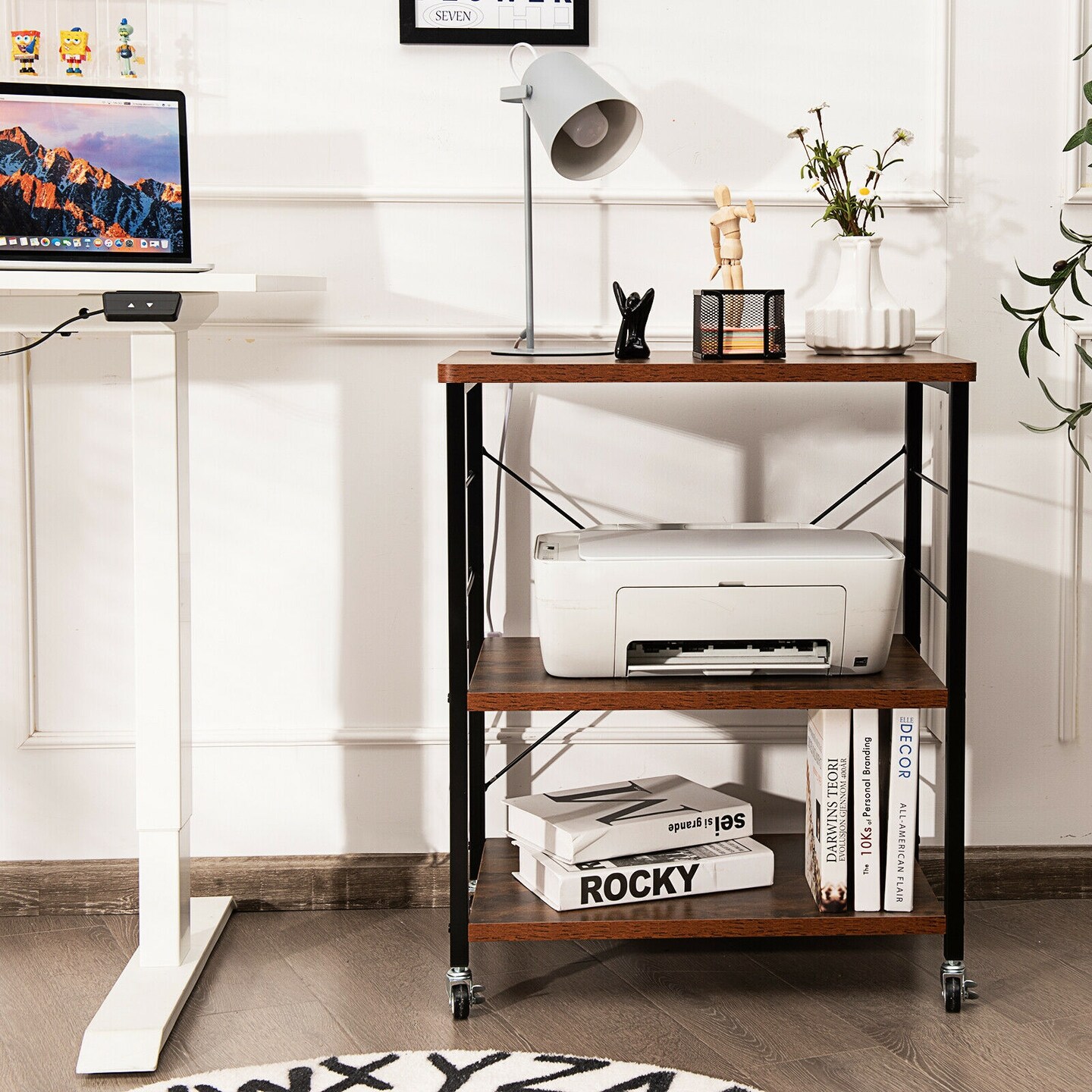 3-Tier Kitchen Baker's Rack Microwave Oven Storage Cart with Hooks