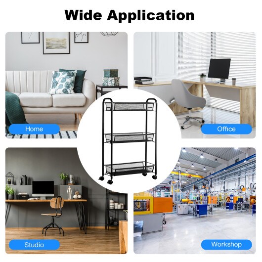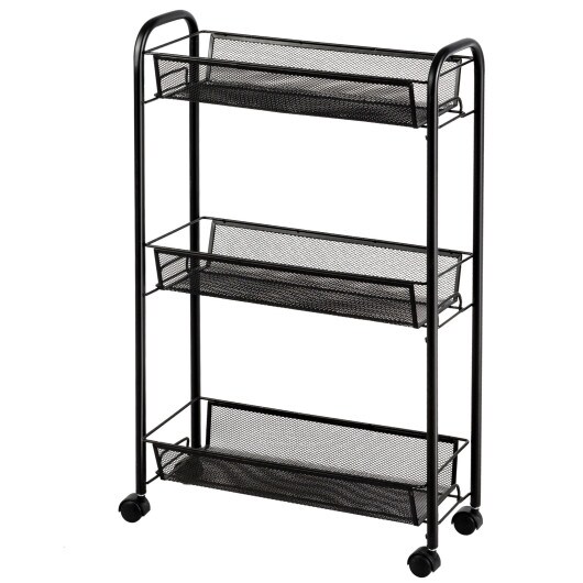 3-Tier Mesh Rolling Cart Mobile Organizer Stand Utility Cart Trolley