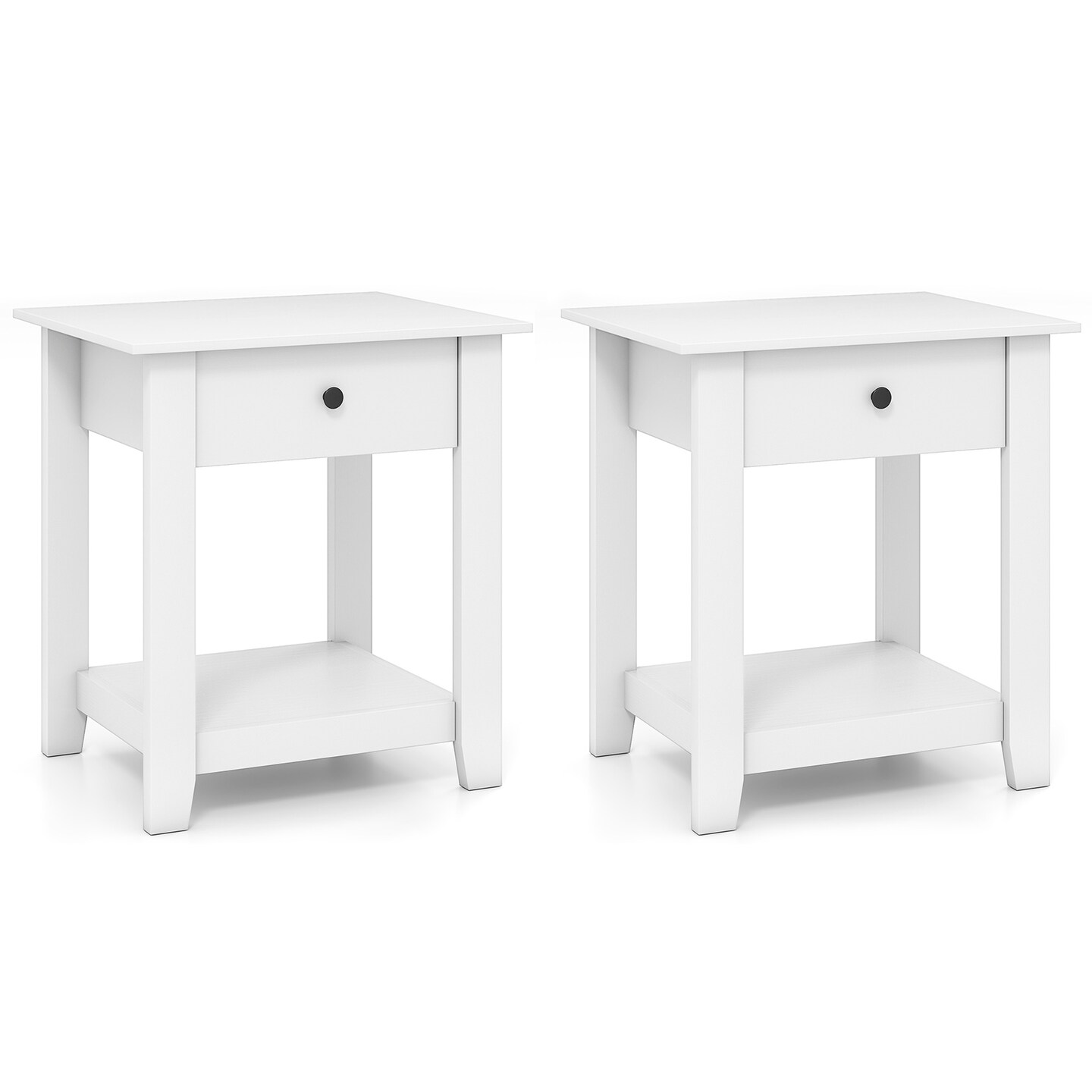 3-Tier Modern Nightstand with Drawer Engineered Wood Bedside Table with Open Shelf