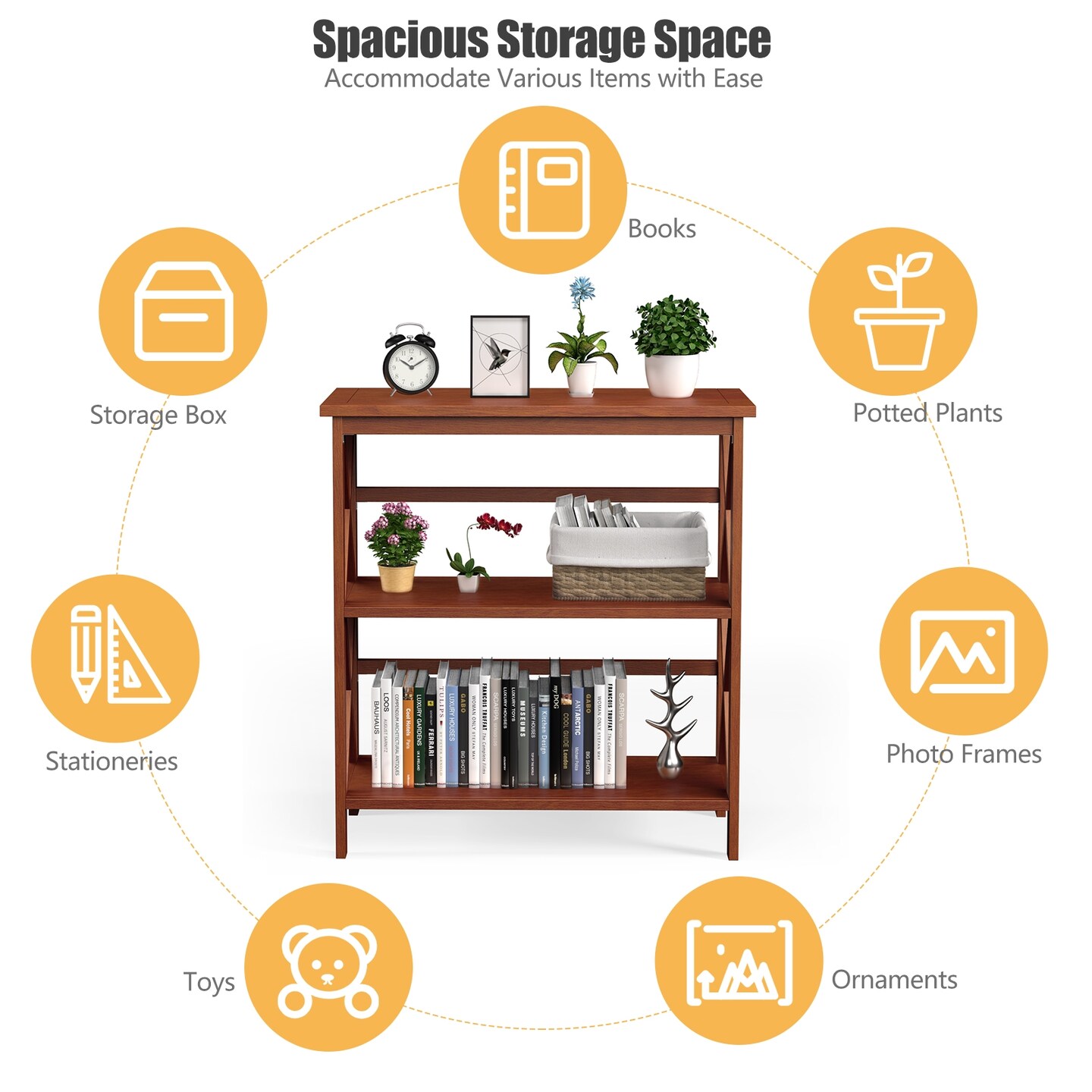 3-Tier Multi-Functional Storage Shelf Units Wooden Open Bookcase and Bookshelf