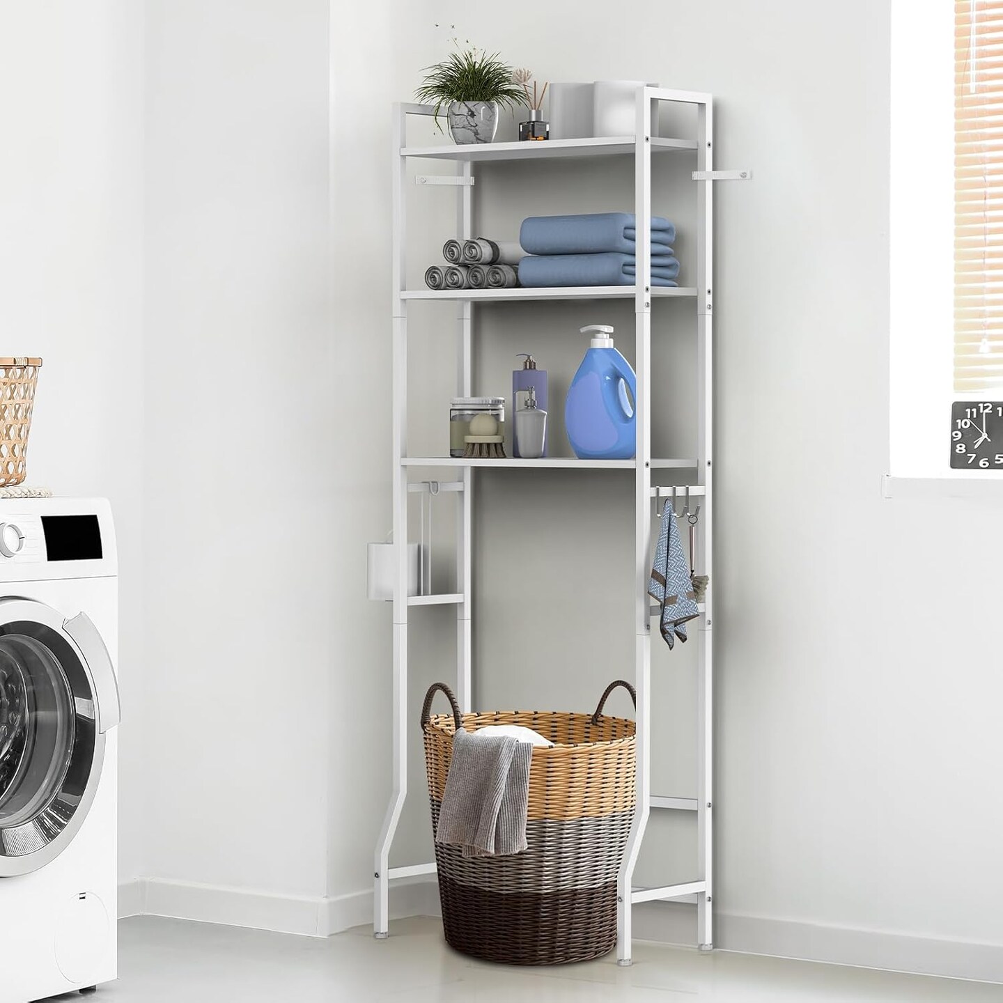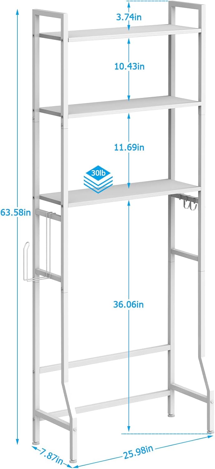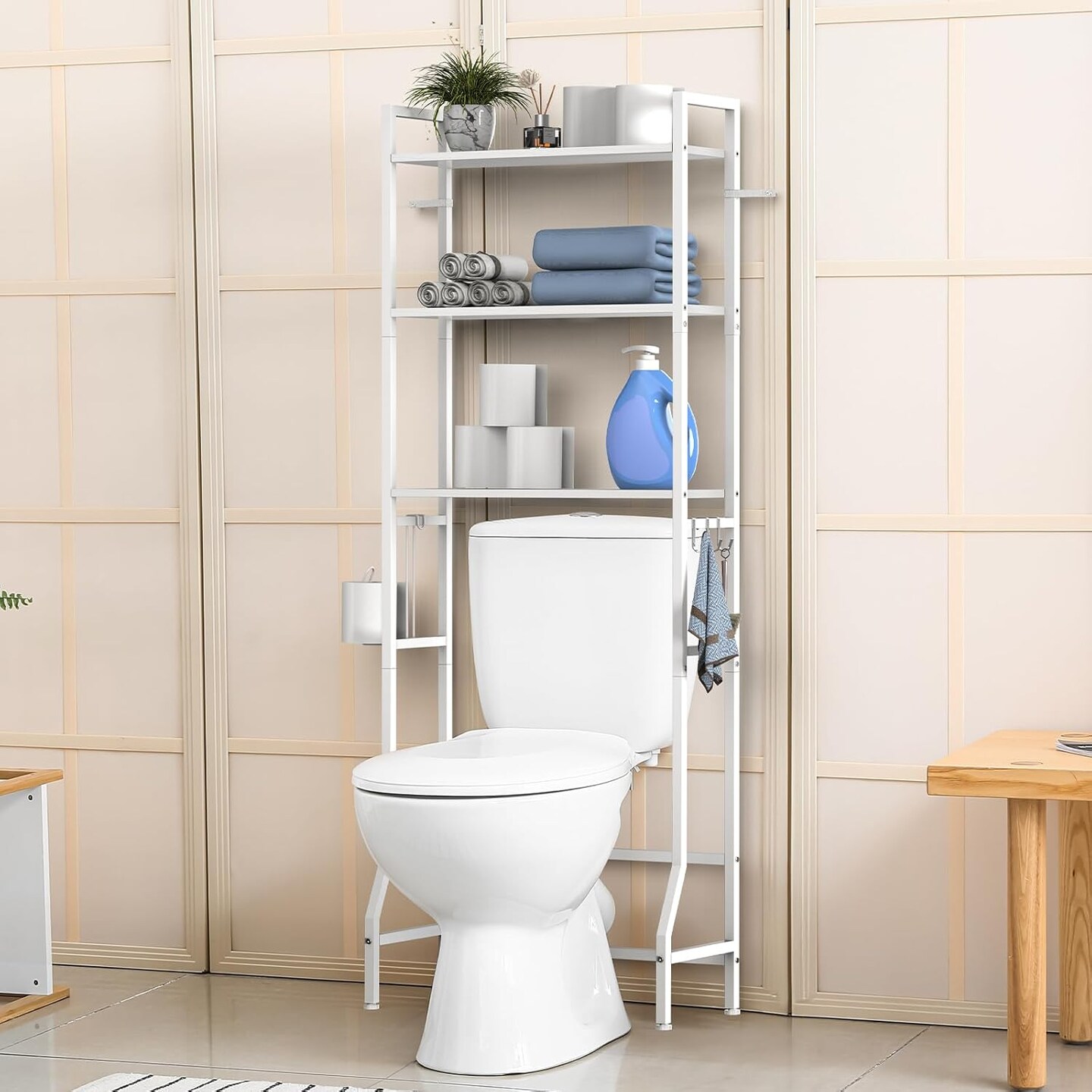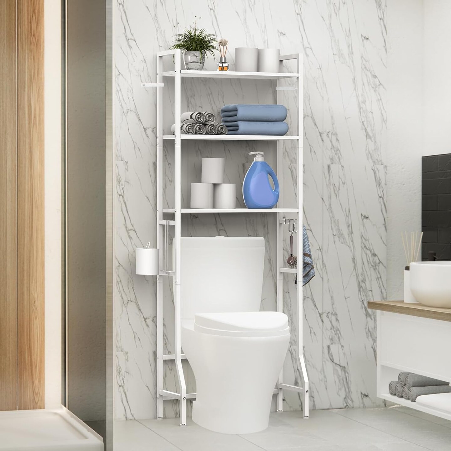 3-Tier Over-The-Toilet Storage Shelf with Adjustable Feet | Anti-Tip Bathroom Organizer | White Scandinavian-Style Space-Saving Shelf for Bathroom, Laundry Room