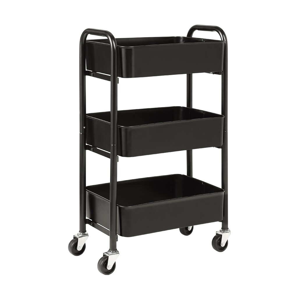 3-Tier Rolling Metal Storage Cart – Kitchen & Under Desk Organizer with Casters