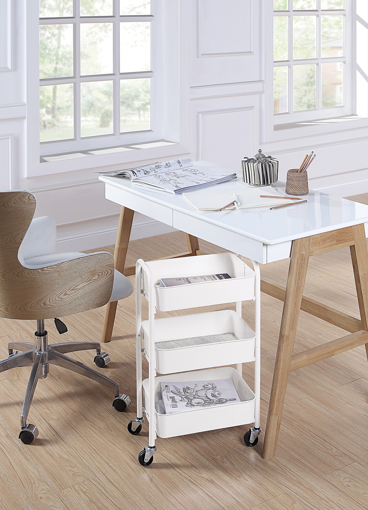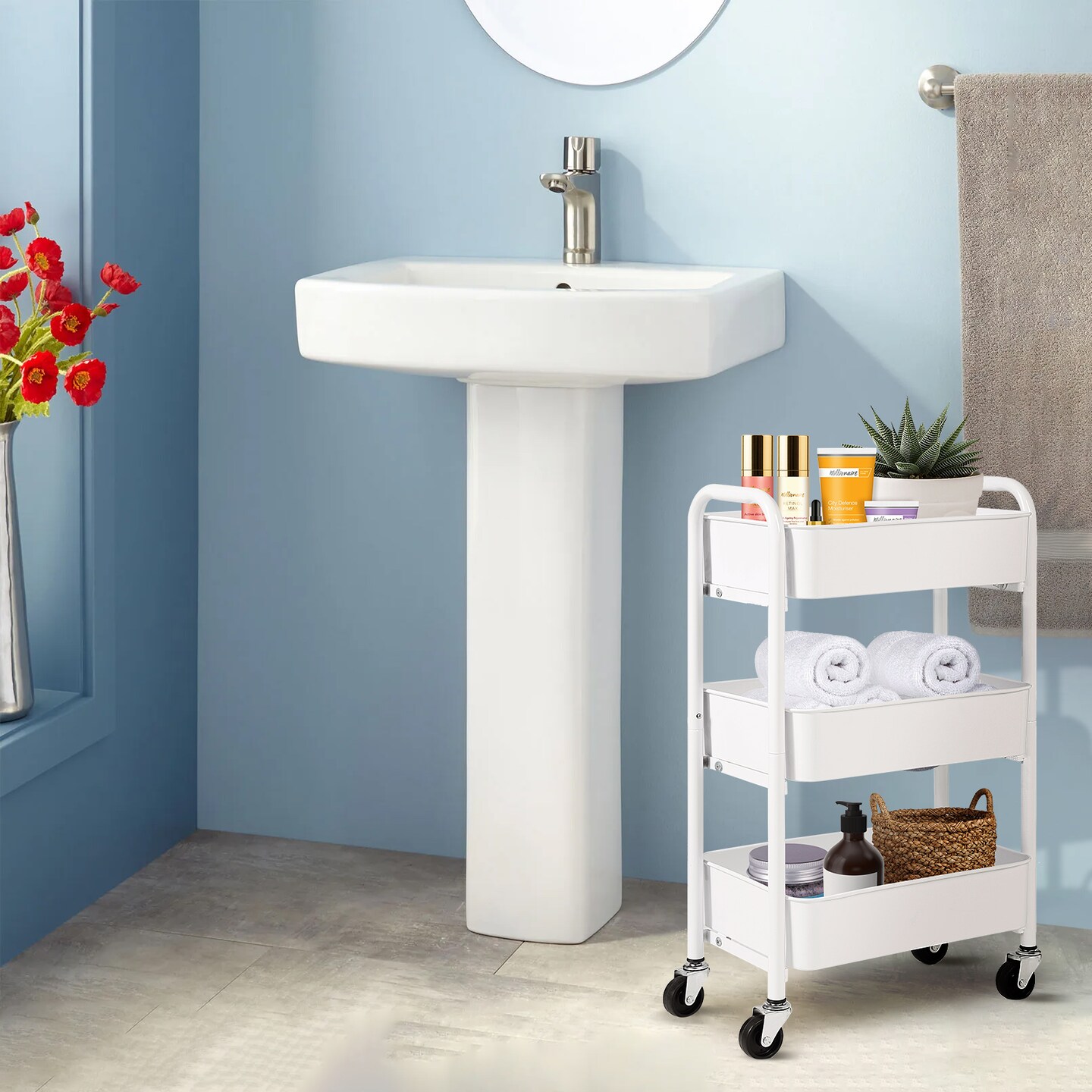 3-Tier Rolling Metal Storage Cart – Kitchen & Under Desk Organizer with Casters