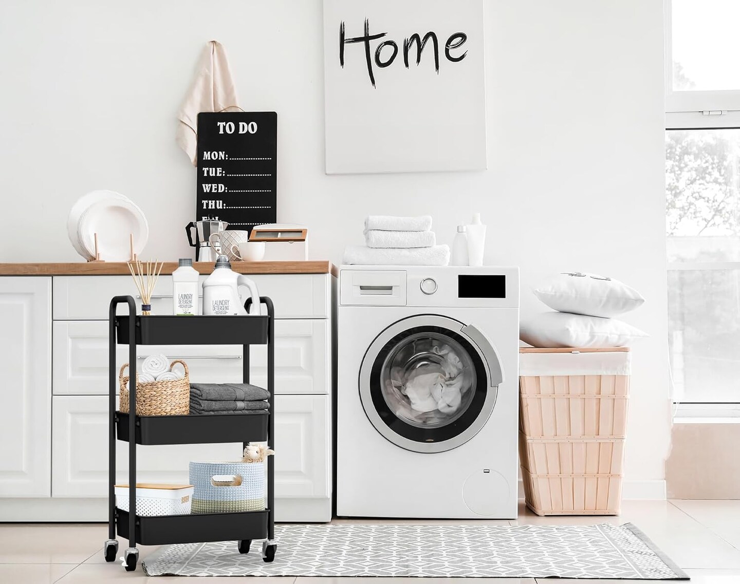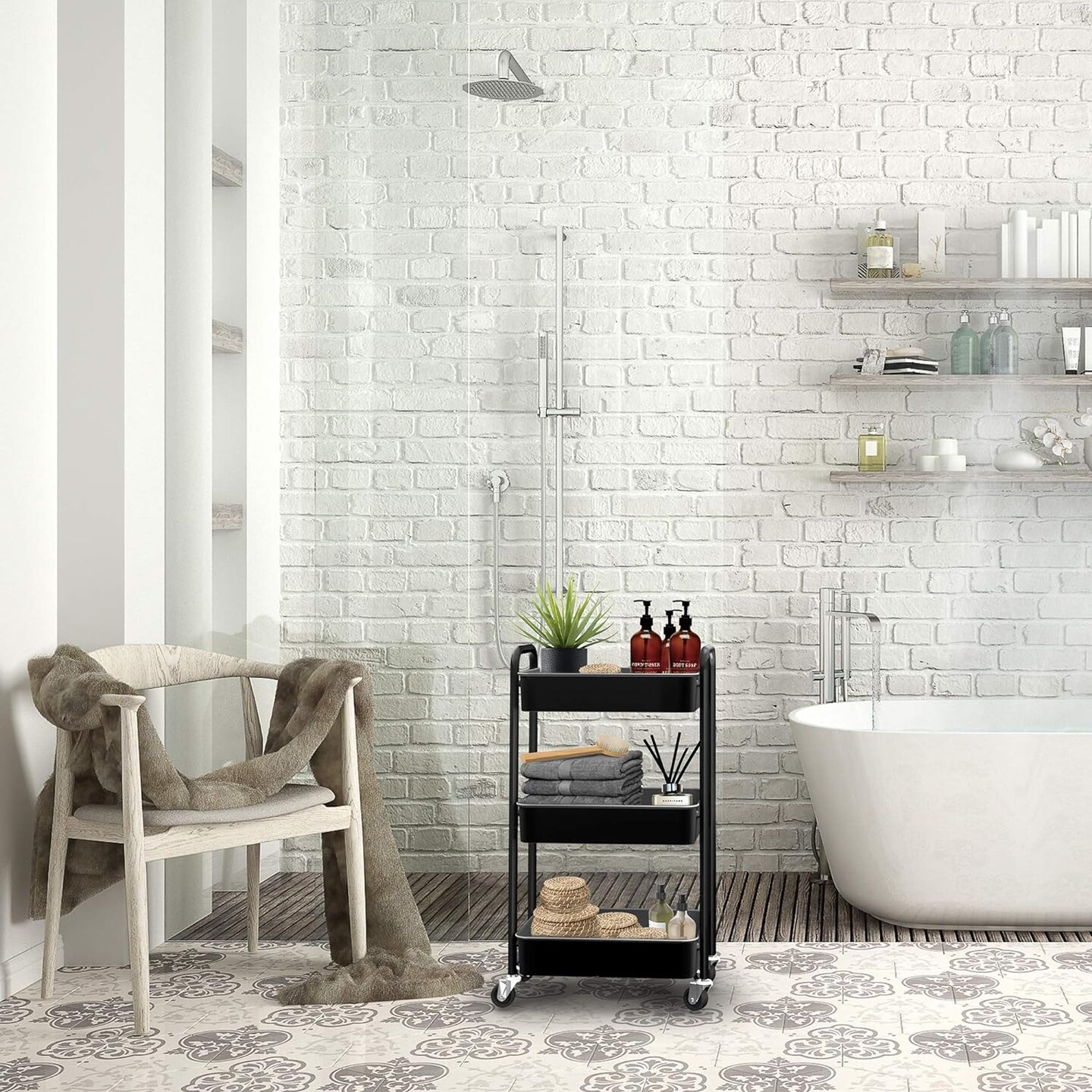 3-Tier Rolling Metal Storage Organizer - Mobile Utility Cart (Black)