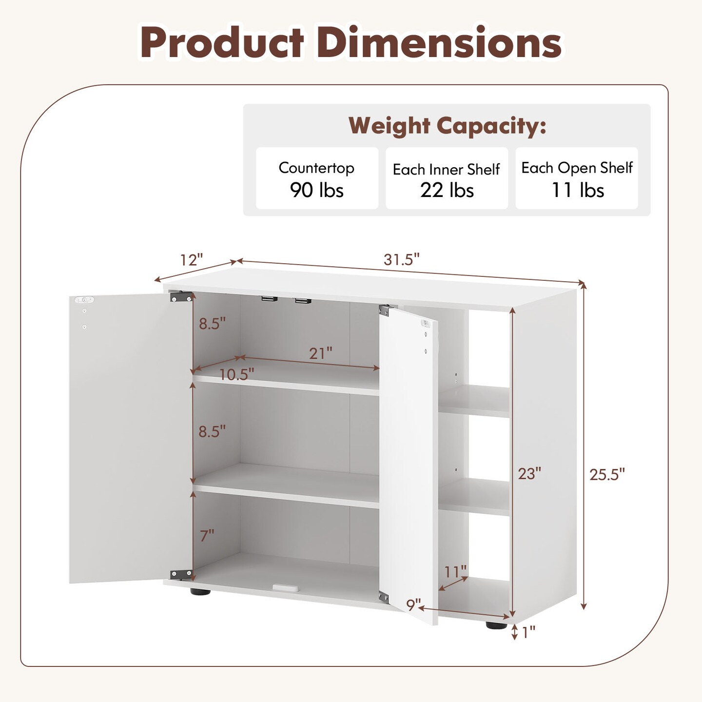 3-Tier Shoe Cabinet with Doors and Adjustable Open Shelves