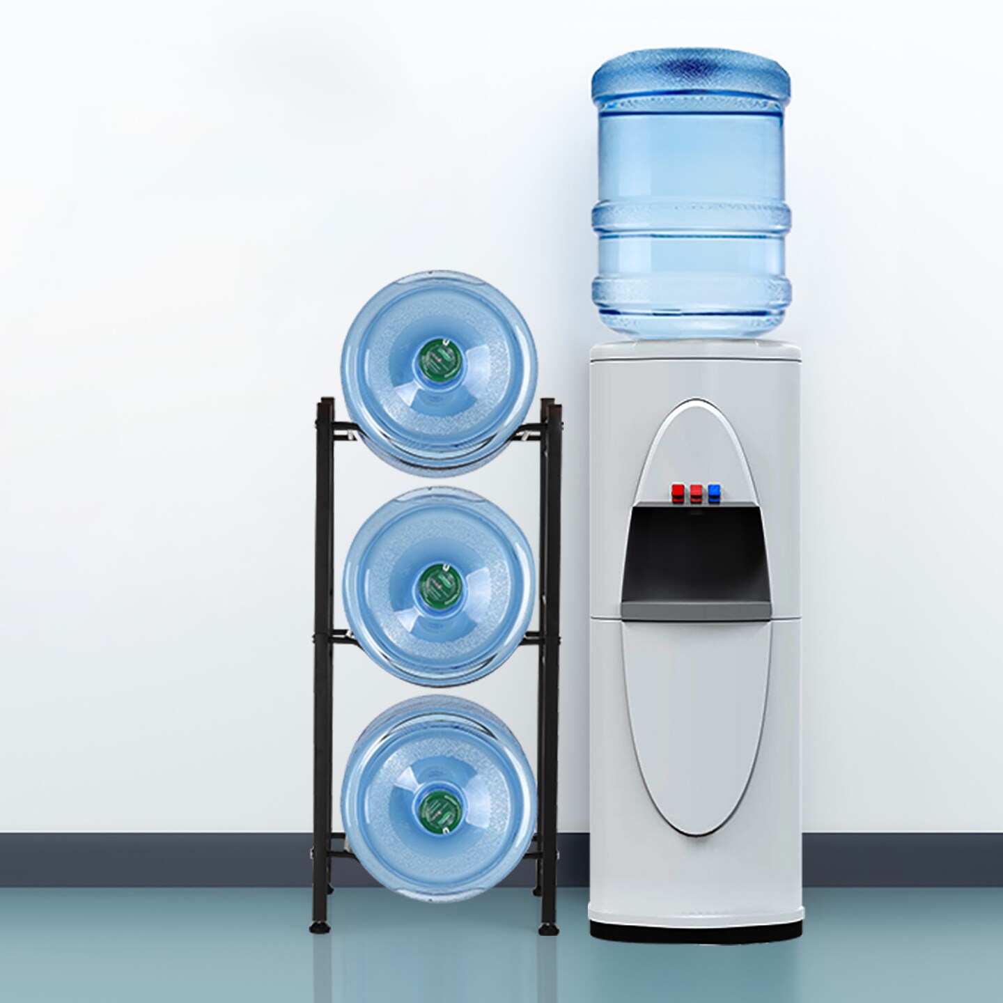 3-Tier Water Jug Rack, 5 Gallon Detachable Water Bottle Holder for Kitchen, Office, Home, Black