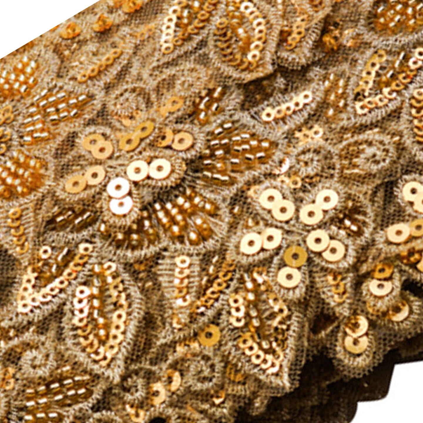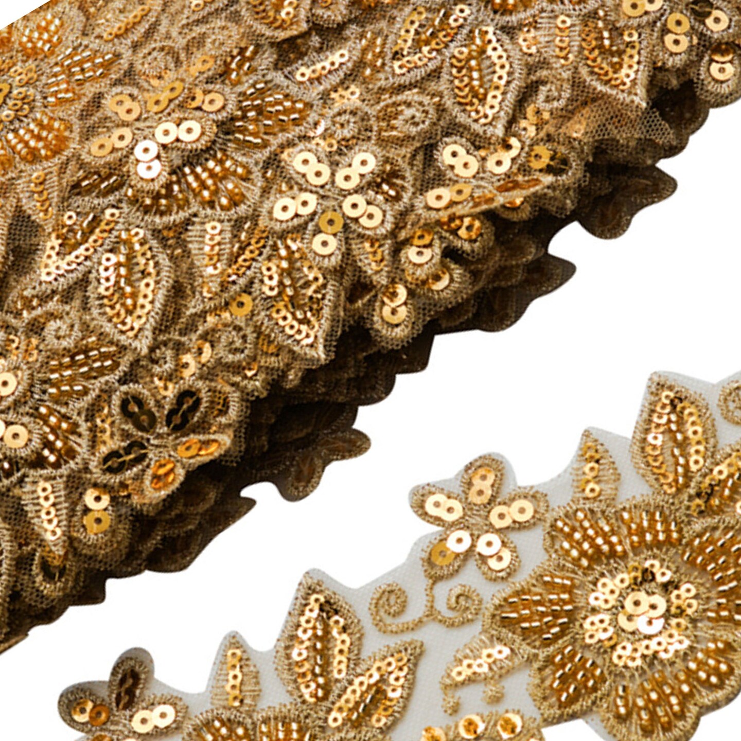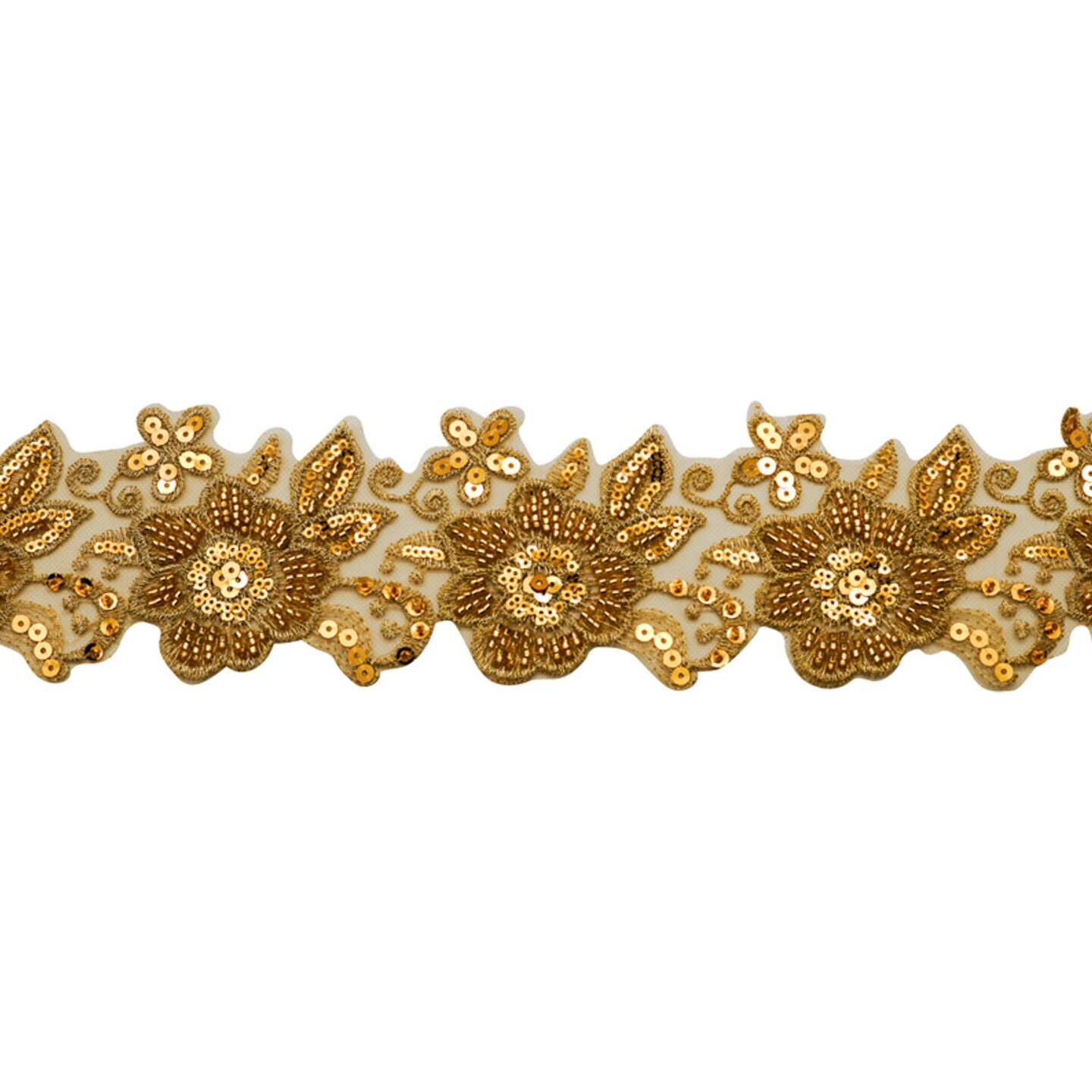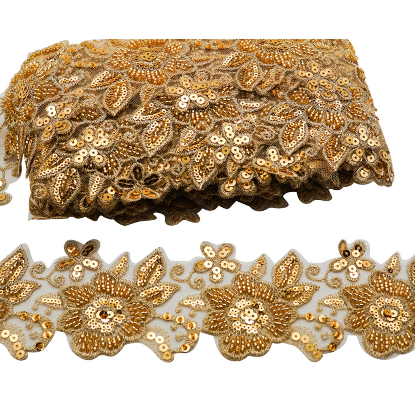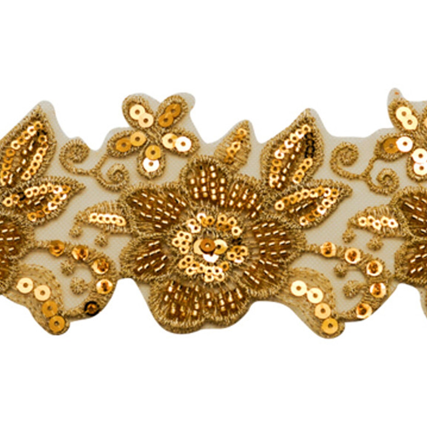 3"x 10 yards Gold Floral Beaded Metallic Trim