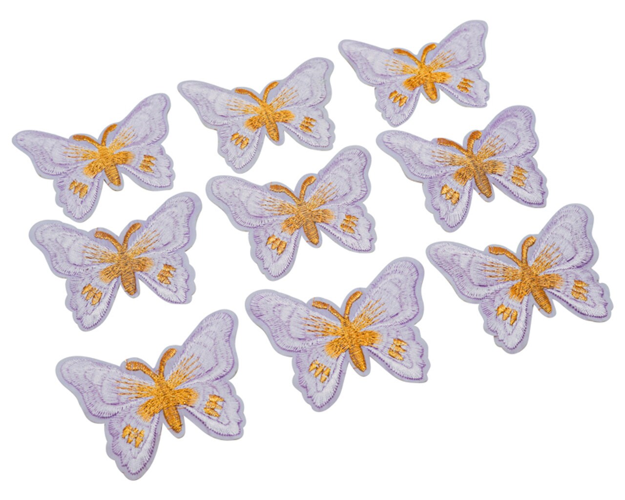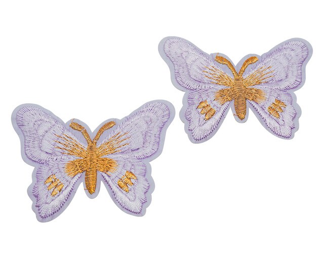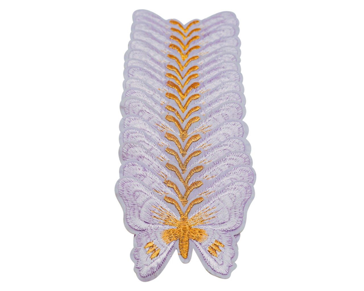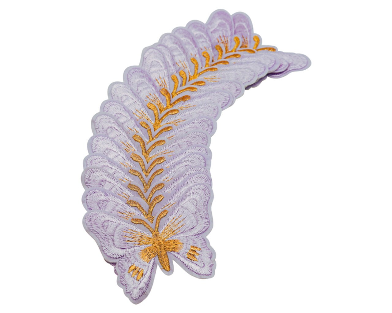 3"x 2 1/4" Lavender / Gold Embroidery Heat Transfer Iron On Butterfly Patch Pack of 72