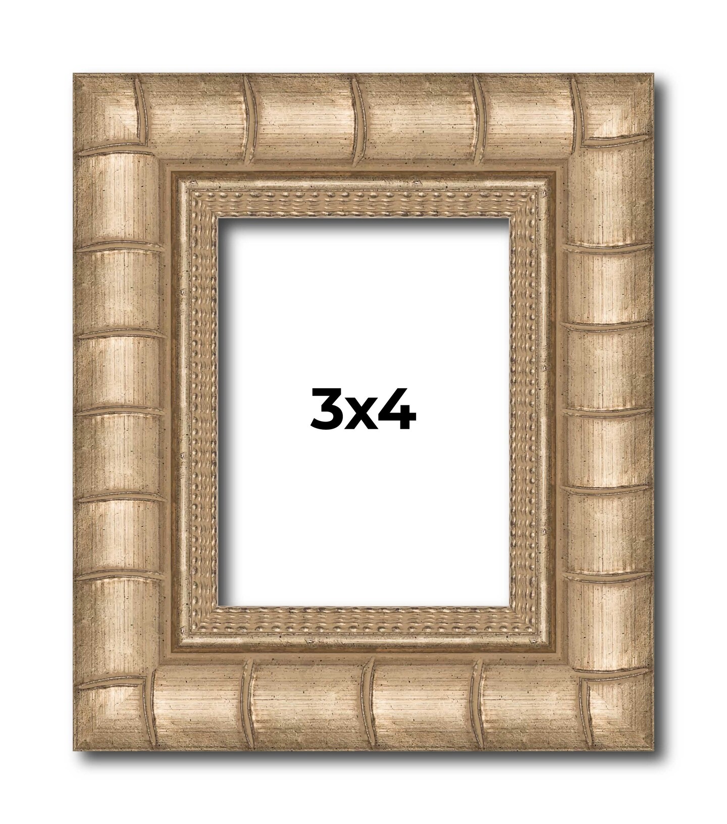 3x4 Modern Bamboo Picture Frame with UV-Resistant Acrylic & Acid Free Backing, Available in 5 Finishes - Gold, Silver, Brown, Black, and Natural