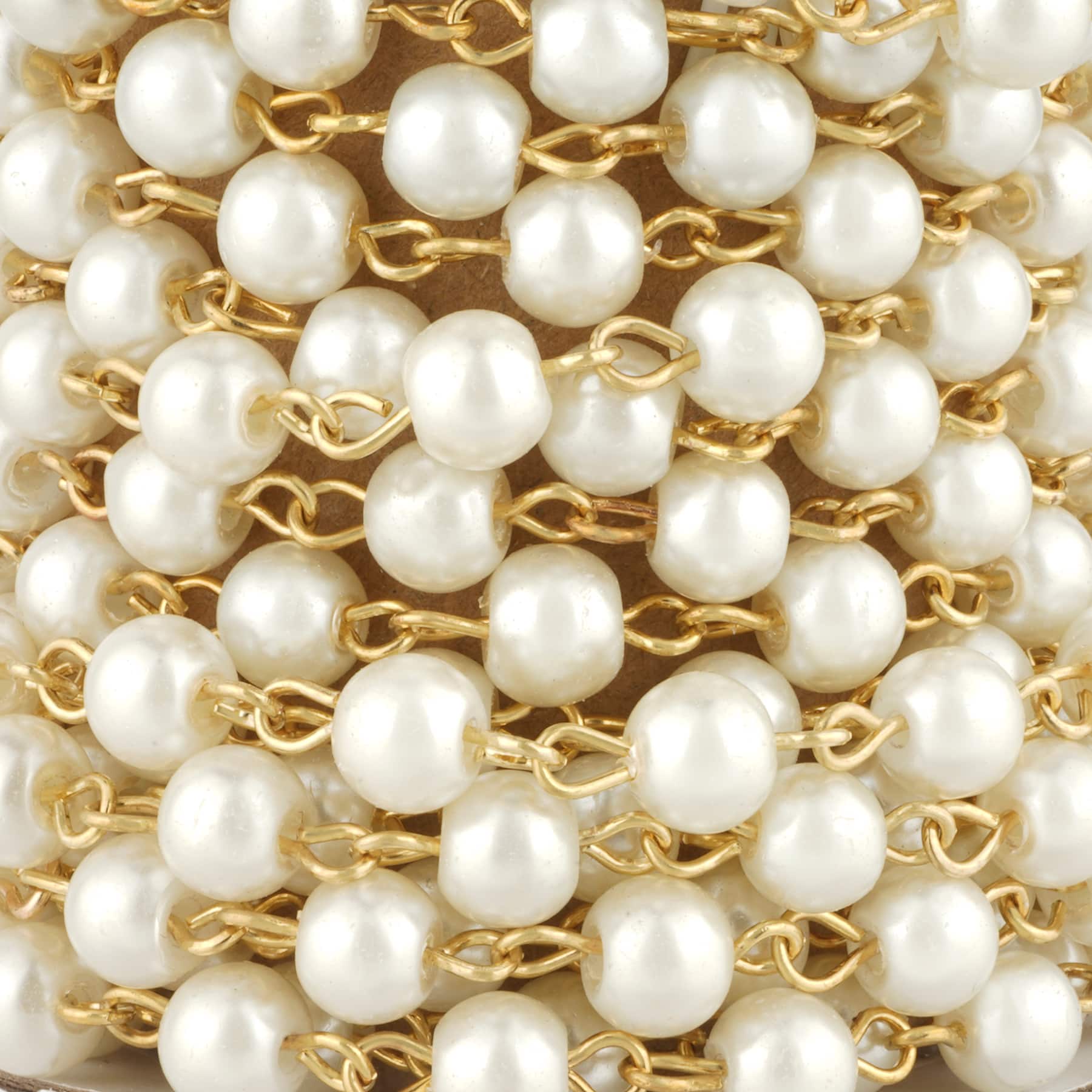 3yd. Gold Chain with White Pearls by Bead Landing™